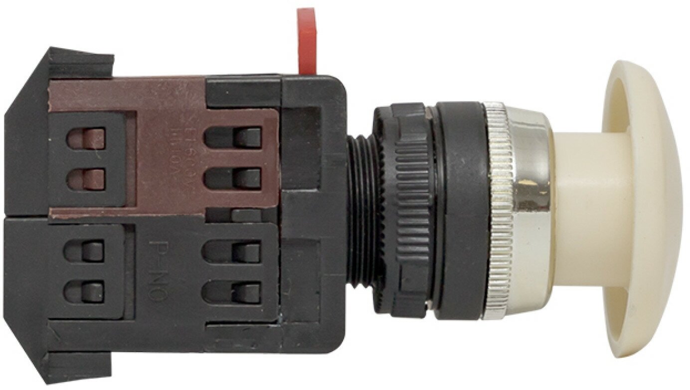 ОПИСАНИЕ. Кнопки типа "Грибок" применяются в электрических цепях переменного тока частотой 50/60 Гц с напряжением до 660 В и постоянным напряжением до 400 В. Исполнение такого типа ( активная часть выступает) позволяет простым нажатием быстро подать управляющий сигнал на оборудование. Включение кнопки облегчается за счет большой площади поверхности нажатия. ПРЕИМУЩЕСТВА. Возможность использования дополнительных размыкающих и замыкающих контактов. Быстрая и удобная замена лампы подсветки. Широкий ассортимент кнопок различного количества и типа контактов, различных цветов и фиксаций. Легкий монтаж/демонтаж дополнительных контактов. ПРИМЕНЕНИЕ. Кнопки типа "Грибок" применяются в постах кнопочных, вводно-распределительных устройствах, устройствах автоматического включения резерва, станциях управления электрическими приводами и т. п.
