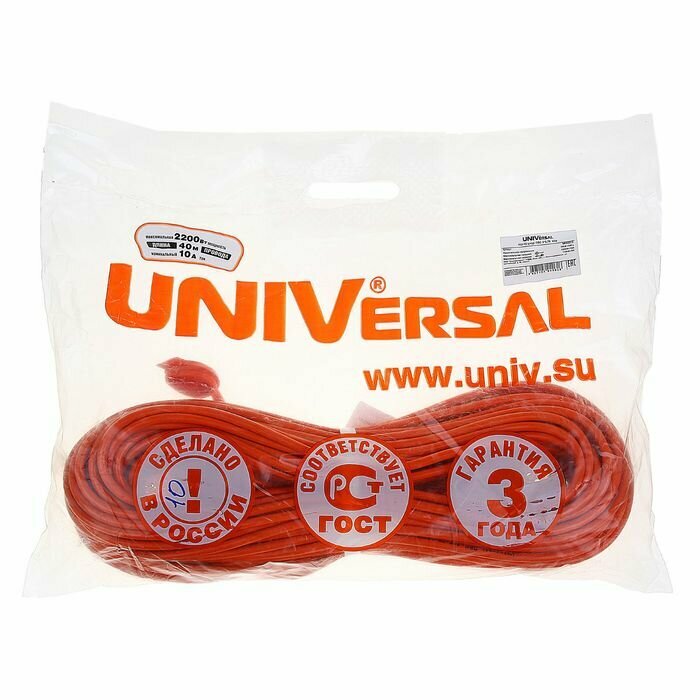 Удлинитель 1х40м с заземл. 10А IP54 УШ-10 ПВС 3х0.75 розетки с защ. крышкой 9632012 Universal