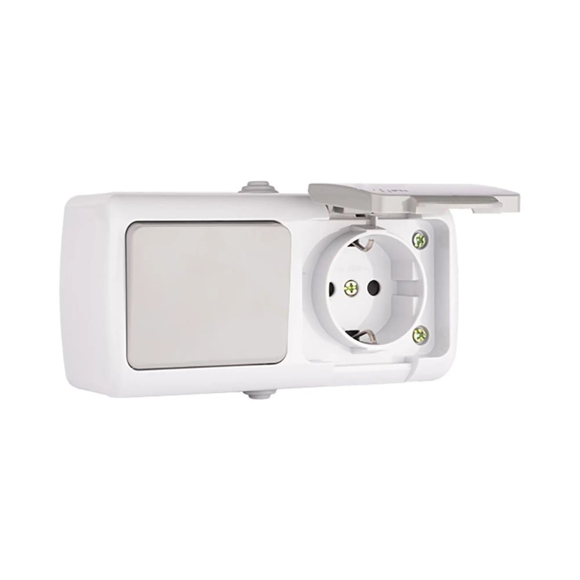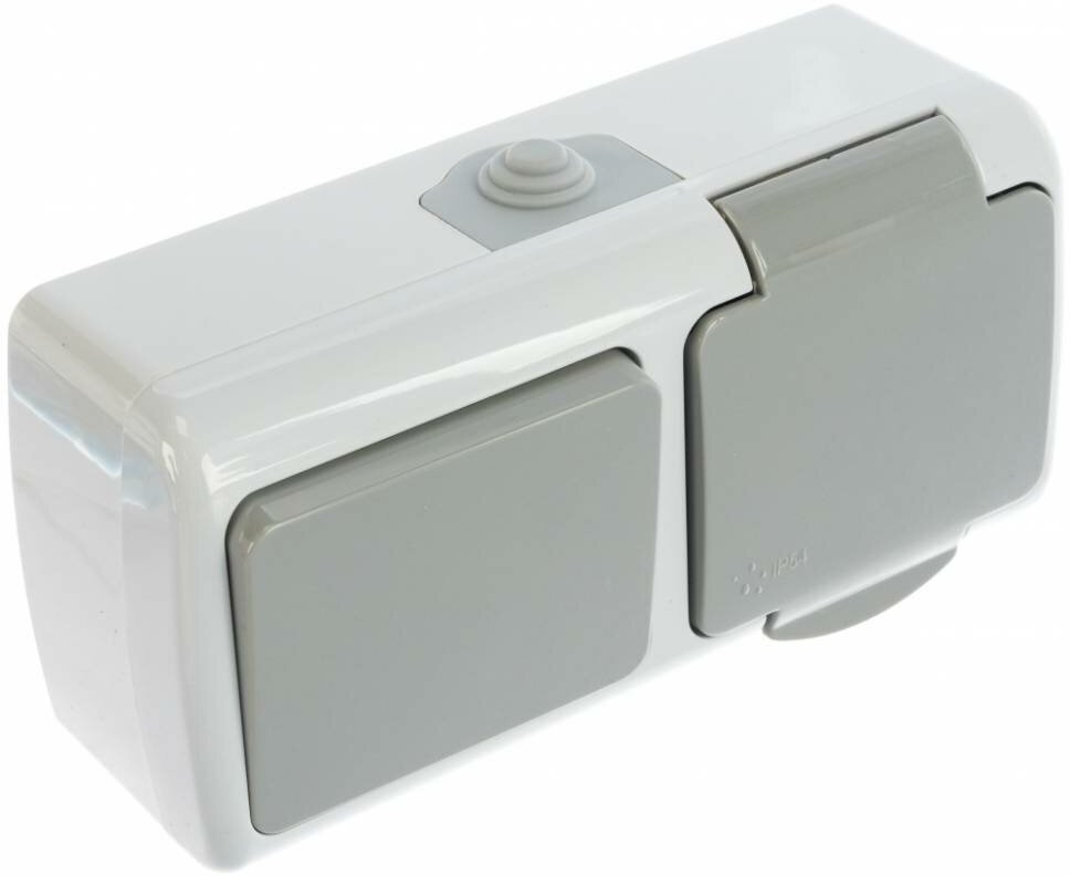 EFRV16-050-30-540 Мурманск Блок розетка 1-м 16А с заземлением с крышкой+ 1-кл выключатель IP54 серый EKF
