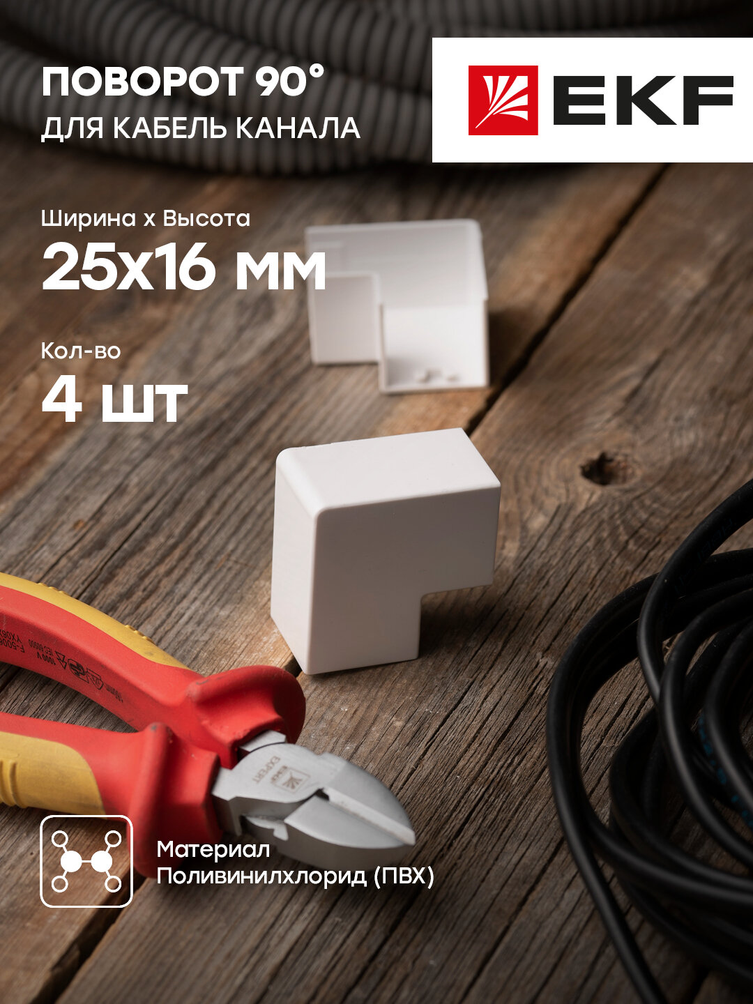 abw-25-16x4 Поворот 90 гр. (25х16) (4 шт) Plast PROxima Белый EKF PROxima 25х16 мм белый 4 шт
