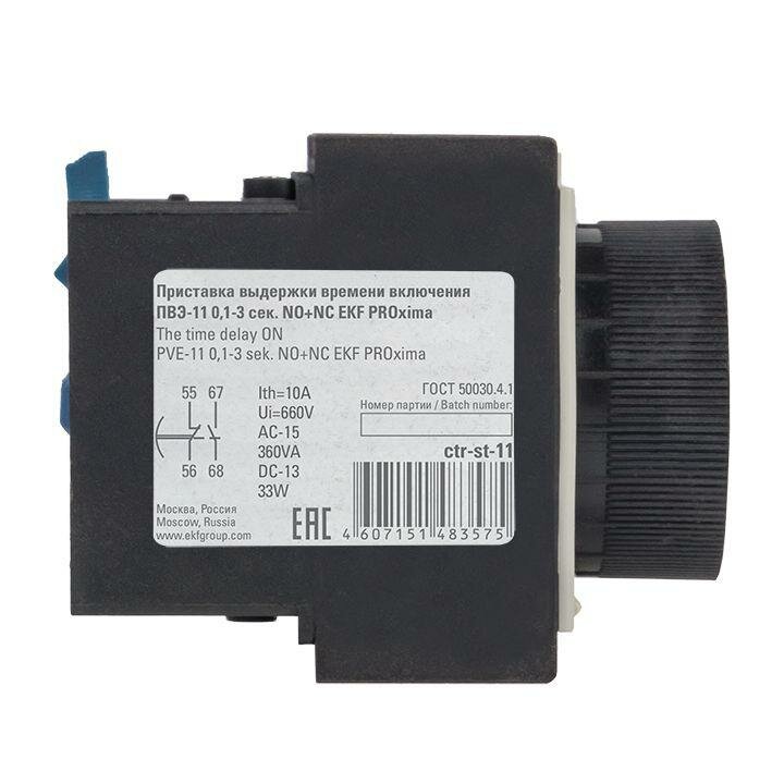 ctr-st-11 Приставка выдержки времени включения ПВЭ-11 01-3сек NO+NC PROxima Упаковка (10 шт.) EKF