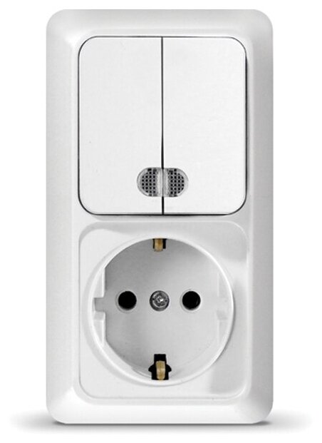Сервис сравнения цен СкидкаГИД предлагает сравнить цены на товар «Блок ОП Олимп 2-кл. вык. с подсветкой + роз. с заземл. верт. бел. О0041 Universal О0041 с подсветкой»