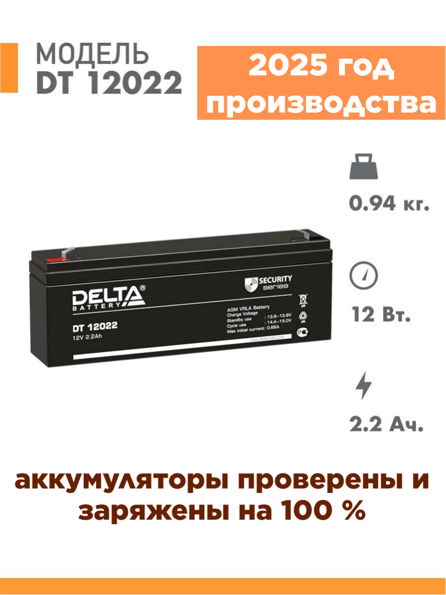 Аккумулятор 12В/2.2 А/ч Delta DT 12022