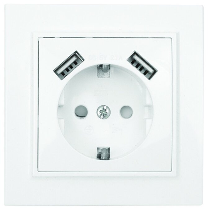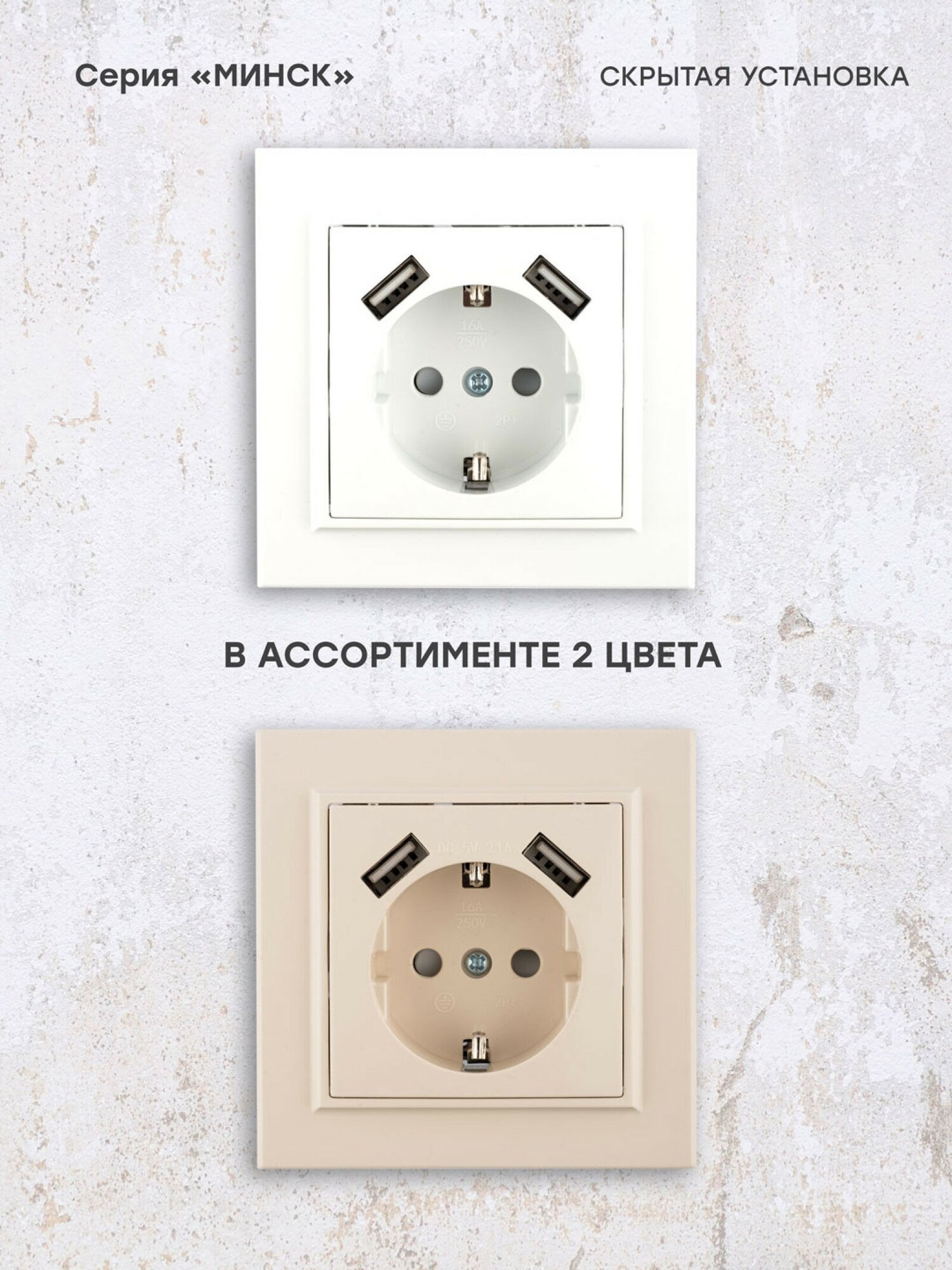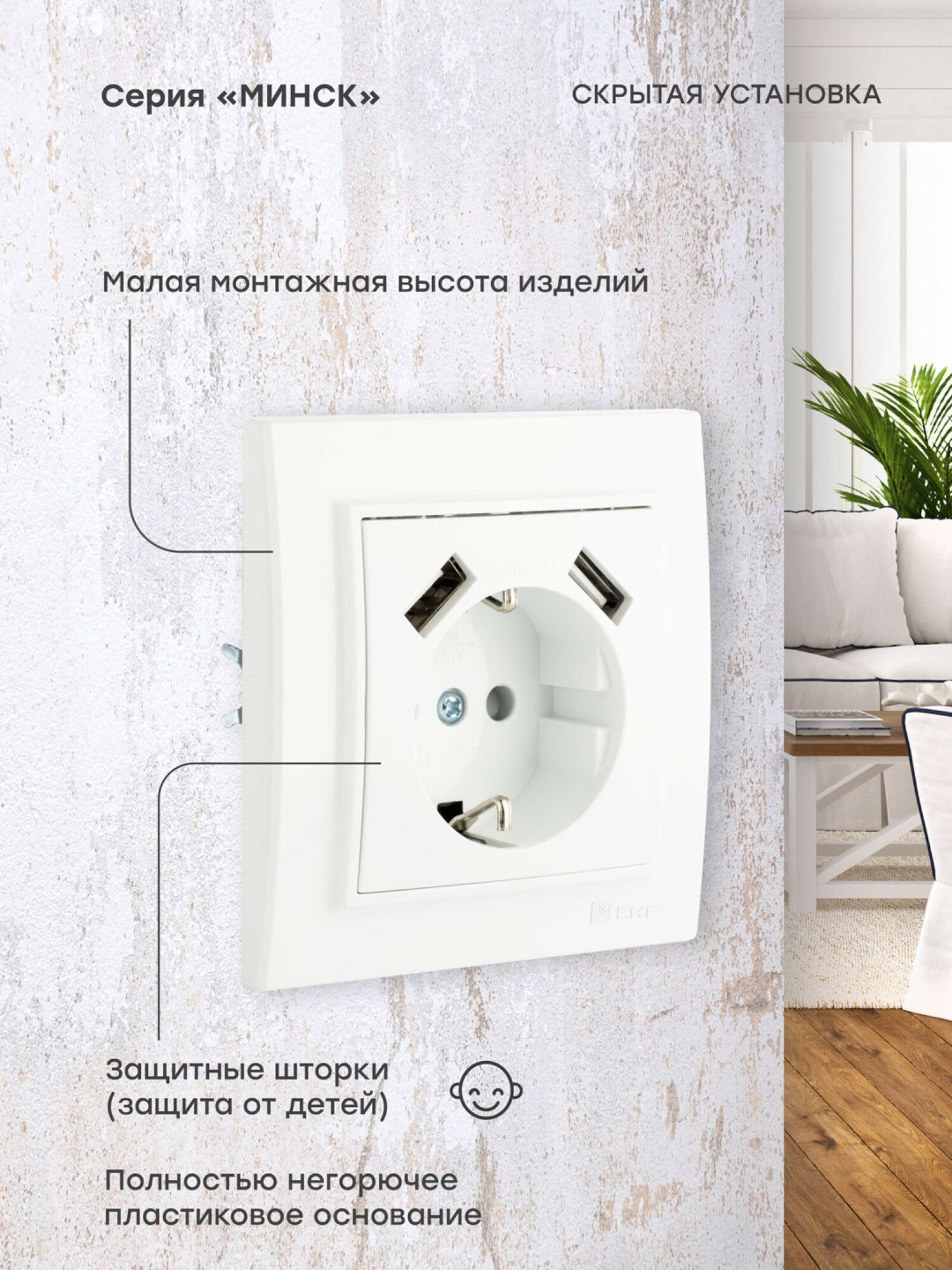 ERR16-028-100-2USB Минск Розетка 1-местная СП с/з 16А белая с защ. штор. с 2 USB 21А EKF