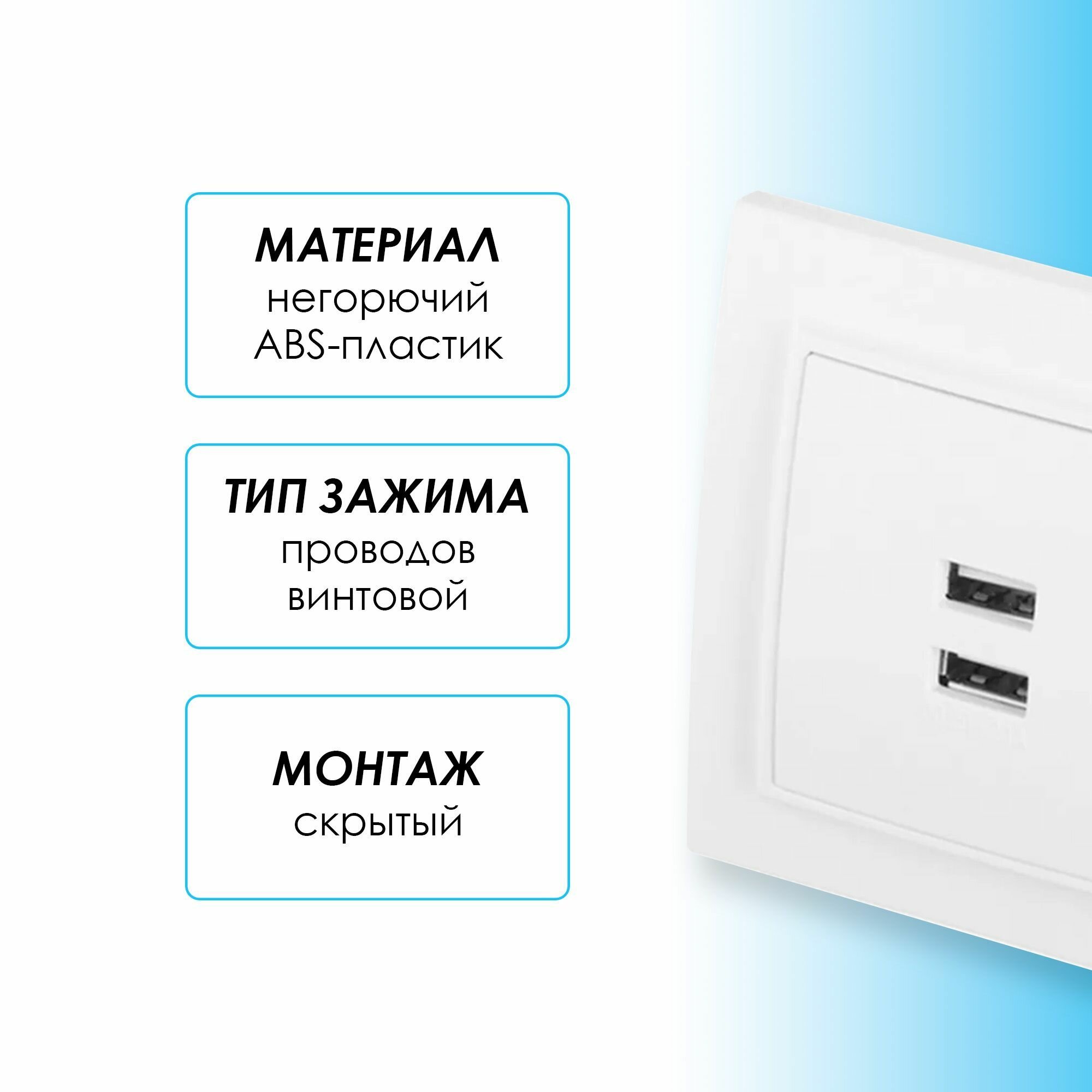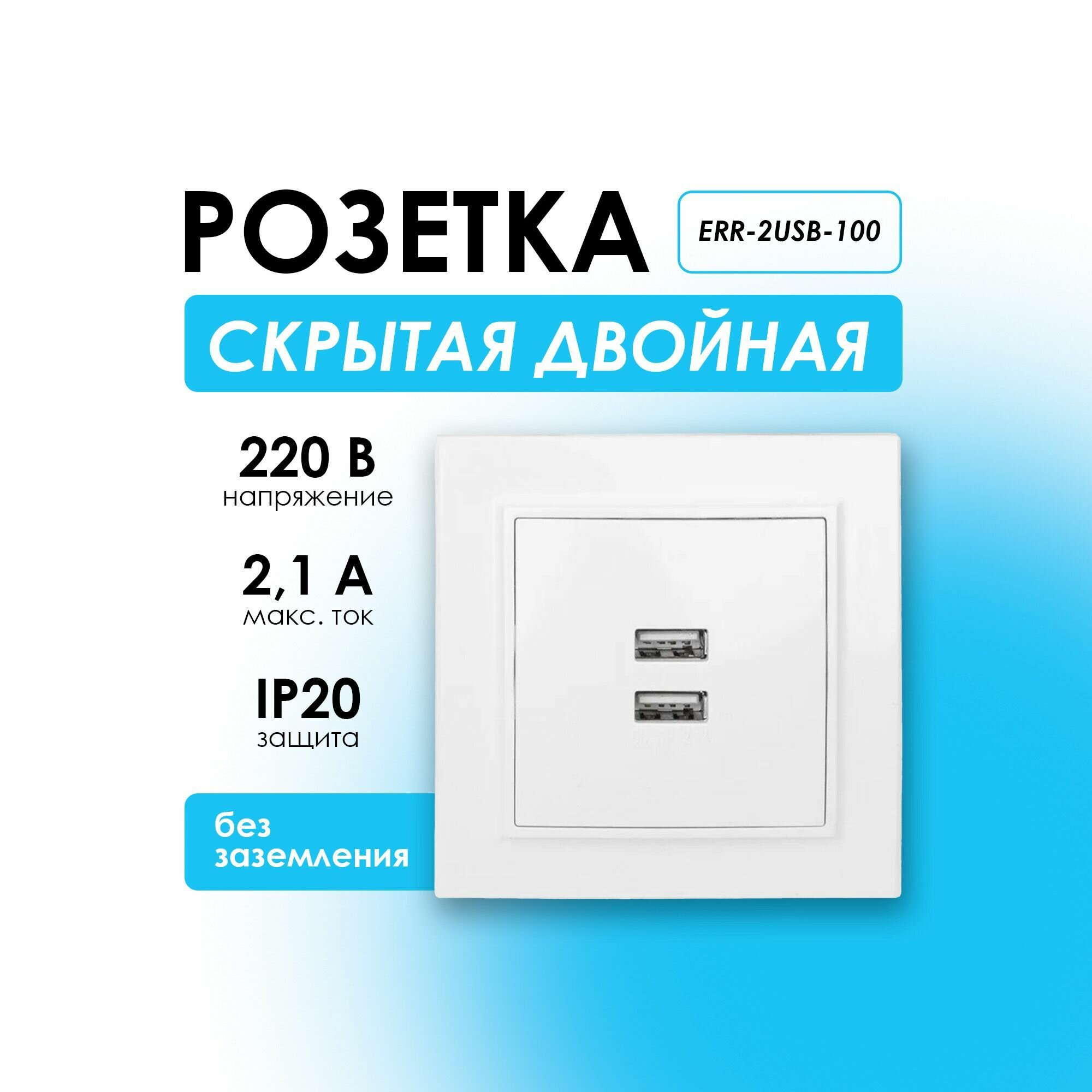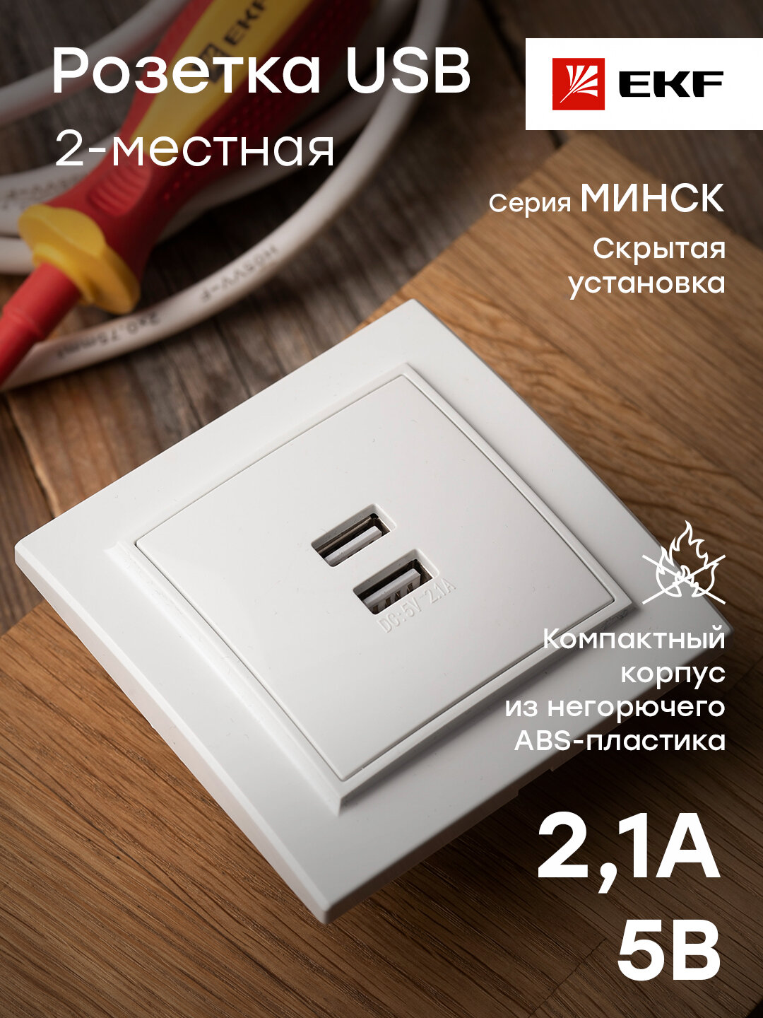 ERR-2USB-100 Минск Розетка USB 2-местная СП 21А белая EKF
