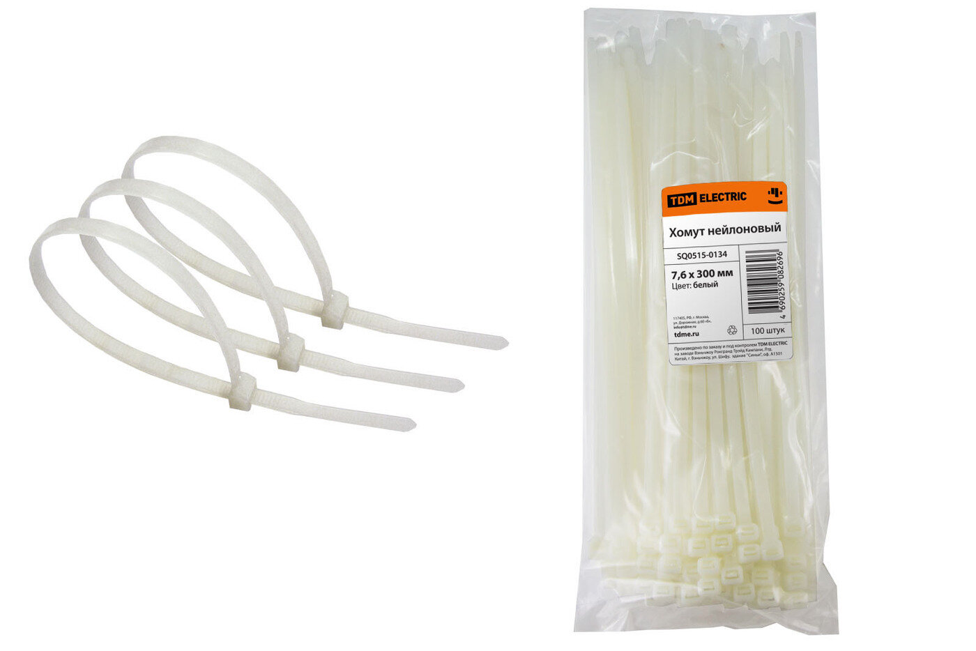 (1 шт.) Хомут (стяжка) нейлон 7.6 х 300 белый (100шт) Navigator NCT-076-300-100/WH 71 056 17243 Хомуты нейлоновые Navigator серии NCT предназначены для увязки в пучок и монтажа кабелей и проводников. Используются при сборке компьютерной техники, электрических распределительных шкафов и щитов, маркировки проводов, бандажирования электропроводки в закрытых помещениях и на открытом воздухе.Размеры W 7.6 L 300Цвет БелыйМатериал Нейлон