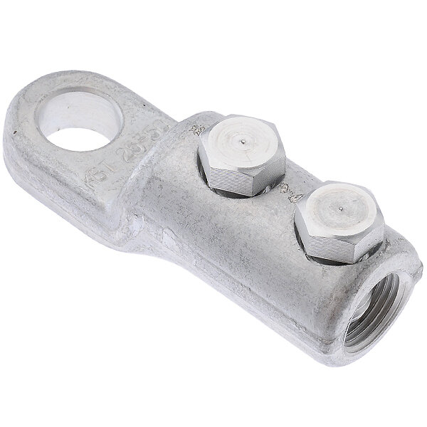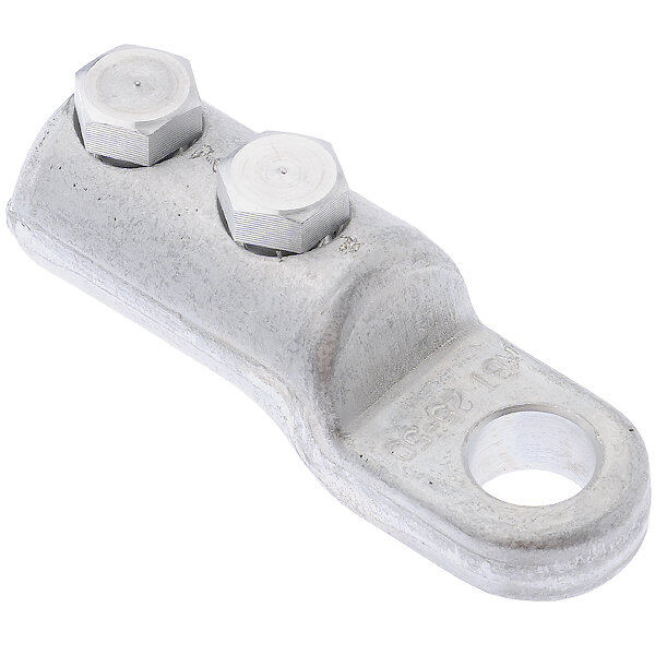 Наконечник болтовой 2НБ-25/50 КВТ 65817• Предназначены для оконцевания любого типа кабельных жил: алюминиевых и медных, круглых и секторных, моножильных и многопроволочных • Каждый болтовой наконечник является мультиразмерным и рассчитан на диапазон сечений кабеля • Рядное расположение болтов на корпусе наконечника • Эксцентриковое отверстие под кабельную жилу в корпусе наконечника • Рабочее напряжение: до 10 кВ • Материал корпуса и болтов: специальный алюминиевый сплав • Покрытие: без покрытия • Крепление на жиле осуществляется методом завинчивания болтов со срывной головкой. Болтовые головки срываются при достижении установленного момента, обеспечивающего оптимальные механические и электрические свойства контактного соединения • Конструкция болтов имеет несколько проточек — срывных "шеек", благодаря чему срыв головки происходит вровень или ниже поверхности наконечника • Лопатка болтовых наконечников "КВТ" смещена относительно центральной оси и расположена на ступень ниже цилиндрического корпуса • Рифленая накатка на внутренней поверхности цилиндрической части наконечников увеличивает площадь и механическую прочность контактного соединения • На лопатке каждого наконечника выбита маркировка с указанием номинального диапазона сечений кабеля и логотипа производителя • Инструмент для монтажа: набор НМБ-6 (КВТ) • Рекомендованы для монтажа термоусаживаемых муфт и оснащения ремонтно-аварийных служб • Диапазоны применения болтовых наконечников и соединителей совпадают с диапазонами термоусаживаемых кабельных муфт, что делает их идеальным дополнением для комплектации наборов кабельных муфт