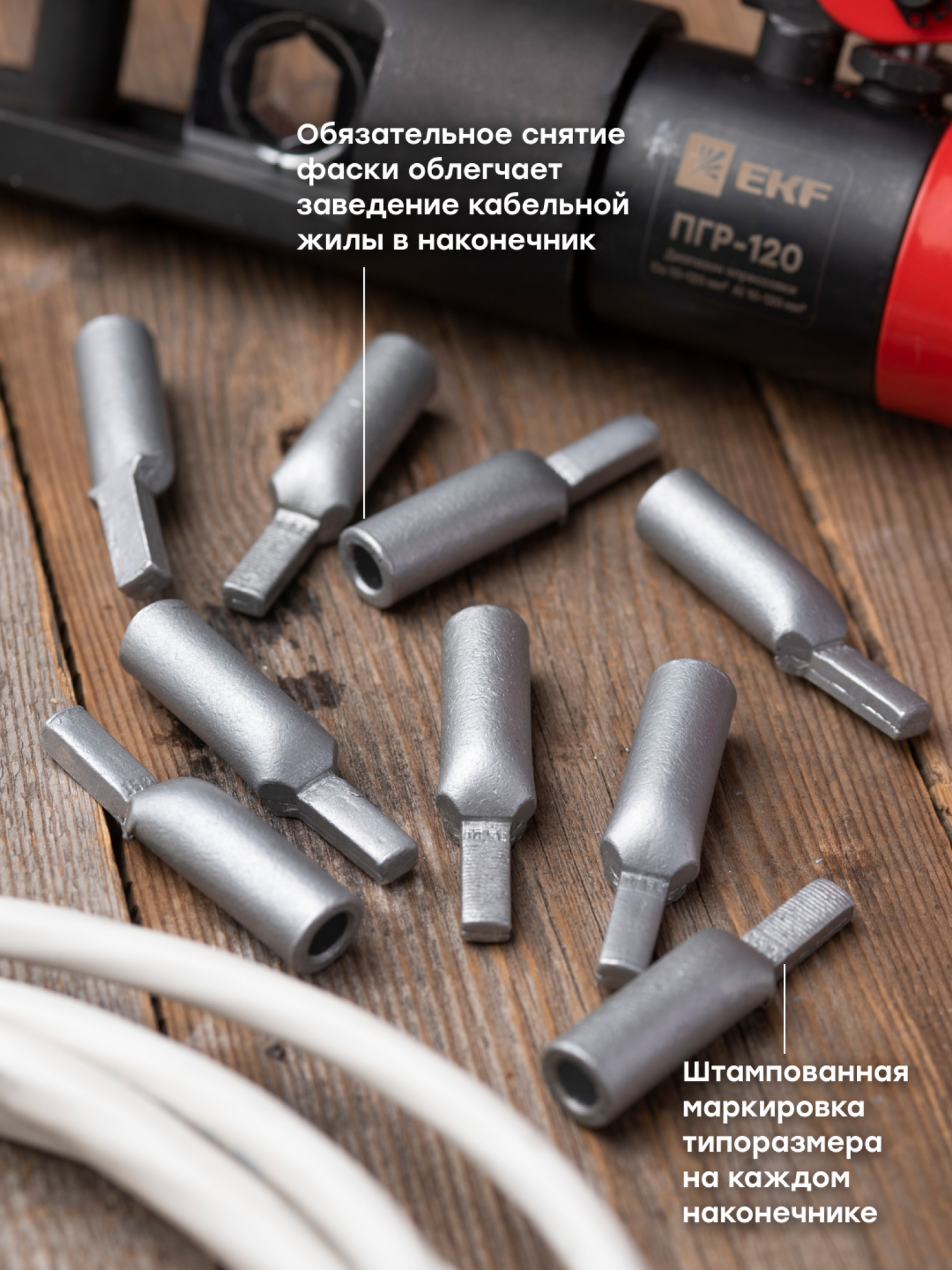 Силовые наконечники и гильзы используются для оконцевания проводов и кабелей с медными и алюминиевыми жилами посредством опрессовки для последующего болтового соединения проводника с оборудованием или шиной. Для оконцевания проводников необходимо использовать специальный обжимной инструмент.