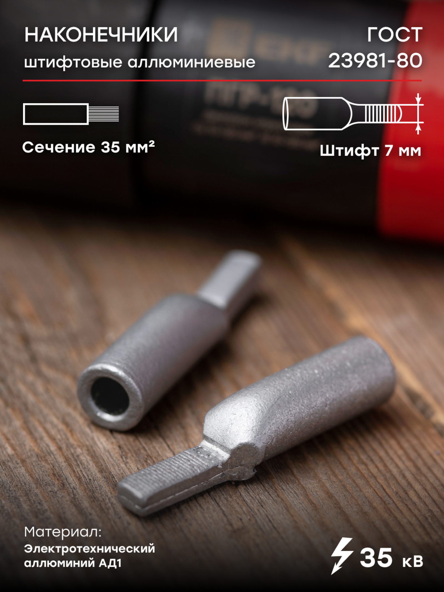 nsha-35-20 Наконечник штифтовой алюминиевый НША 35-20 Упаковка (30 шт.) EKF