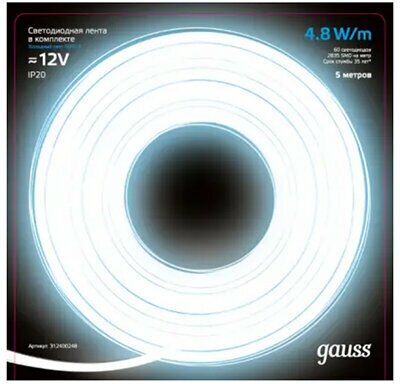 355000505 Лента LED Elementary 2835/60-SMD 4.8W 12V DC синий IP20 (ZIP Bag 5м) Gauss