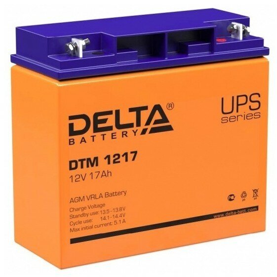 Аккумулятор DTM 12В/17 А/ч Delta 12V 17Ah (DTM 1217) (размер: 167x181x77мм)