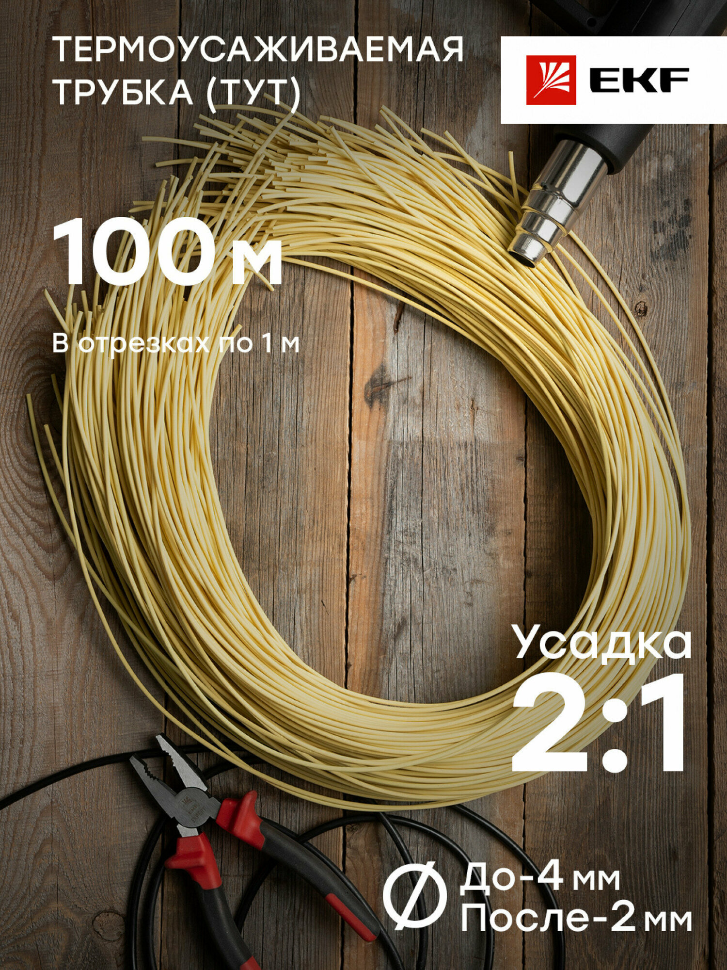tut-4-y-1m Трубка термоусадочная ТУТ 4/2 жел. (уп.100шт) PROxima EKF