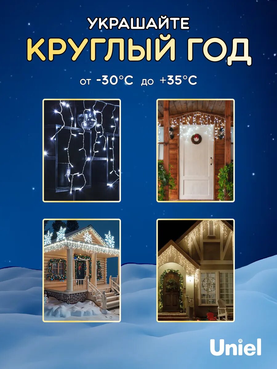 Гирлянда "Бахрома" ULD-B3010-200/SWK WHITE IP67 со стат. свечением 3м соединяемая 200LED бел. свет провод бел. UL-00001367 Uniel