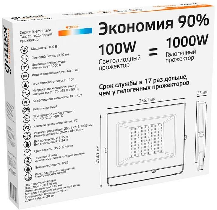 Корпус прожектора изготовлен из прочного литого алюминия, рассеиватель выполнен из прозрачного закаленного стекла. Экономичная LED технология сокращает до 90% затрат на электроэнергию.