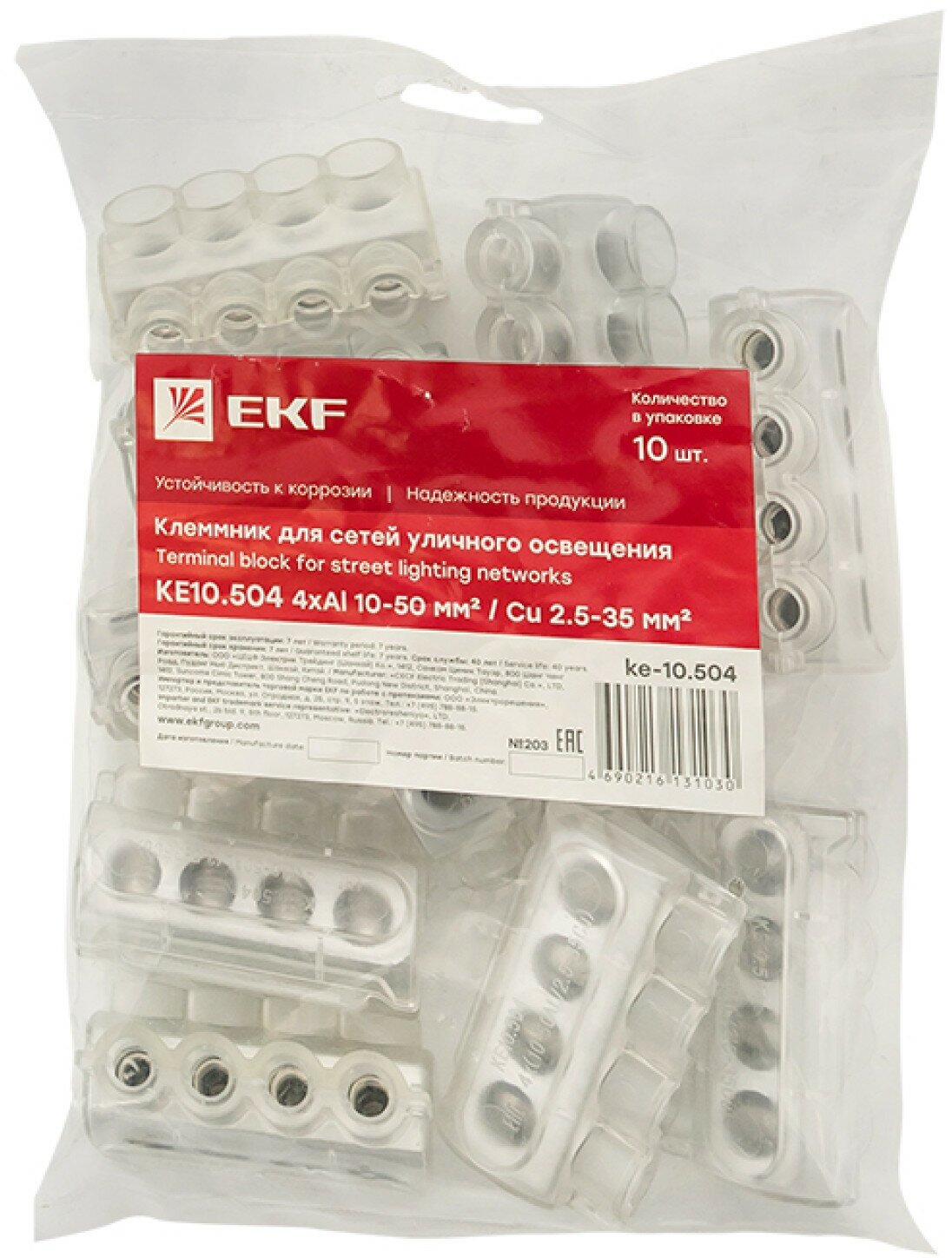 ke-10.504 Клеммник для сетей уличного освещения KE10.504 Al 4x10-50 мм / Cu 2.5-35 мм PROxima Упаковка (120 шт.) EKF