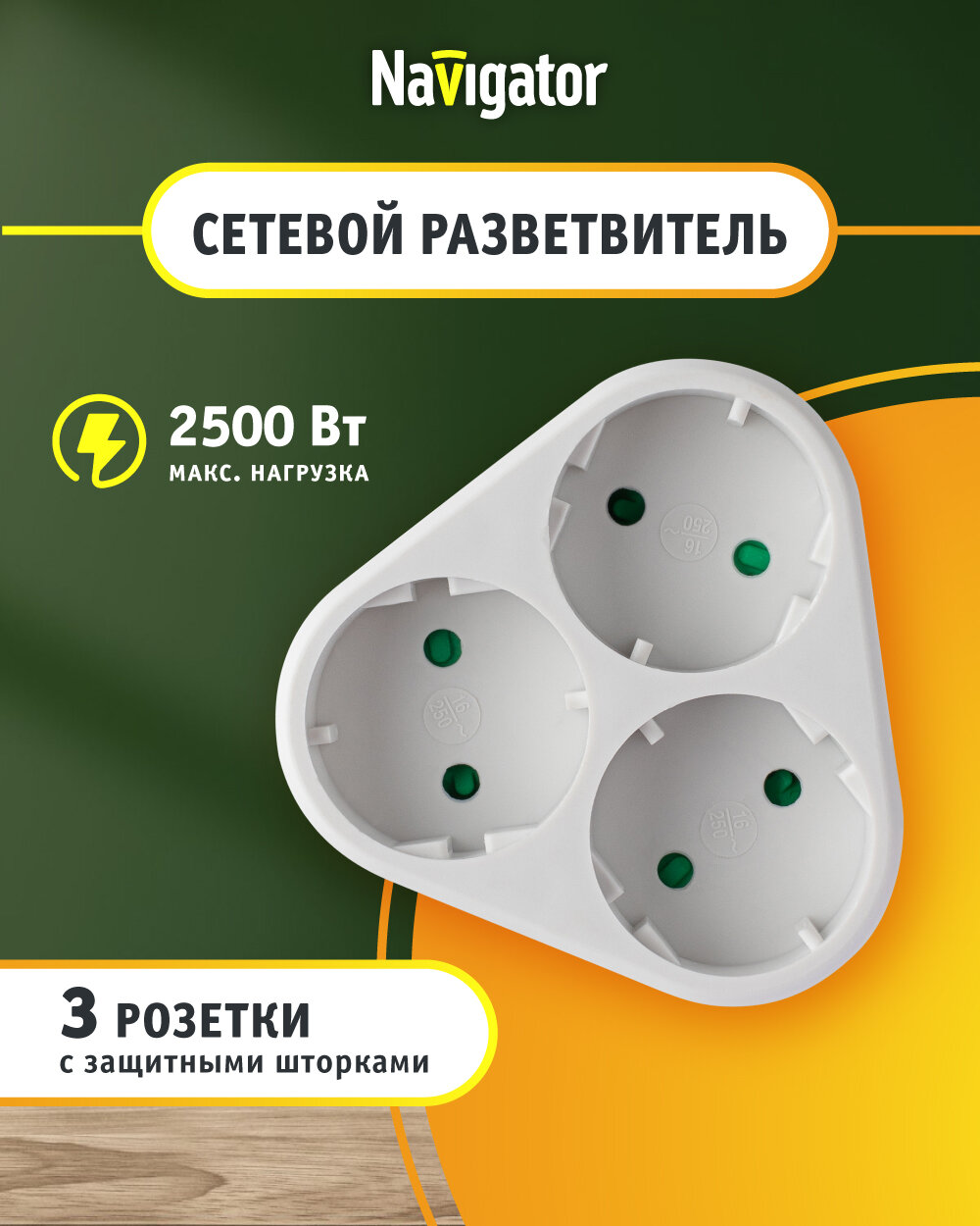 Тройник Navigator —это удобное и практичное устройство, которое позволяет подключить одновременно до трех электрических приборов к одной розетке