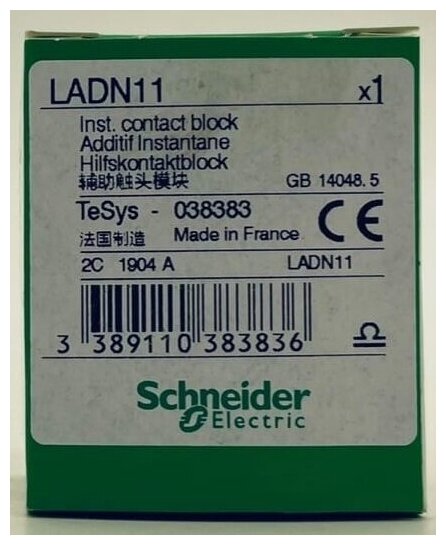 LADN11 ДОП. КОНТ. БЛОК НО+НЗ ФРОНТАЛЬНЫЙ МОНТАЖ КРЕПЛЕНИЕ С ПОМОЩЬЮ ВИНТОВЫХ ЗАЖИМОВ Schneider Electric