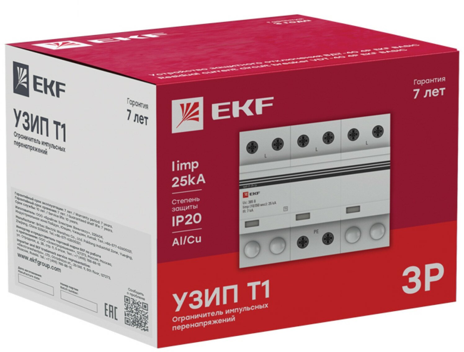 spd-t1-25-3p Устройство защиты от импульсных перенапряжений Тип 1 Iimp 25kA (10/350μs) 3P EKF