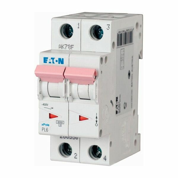 286562 Выключатель автоматический модульный 2п C 2А 6кА PL6-C2/2 EATON