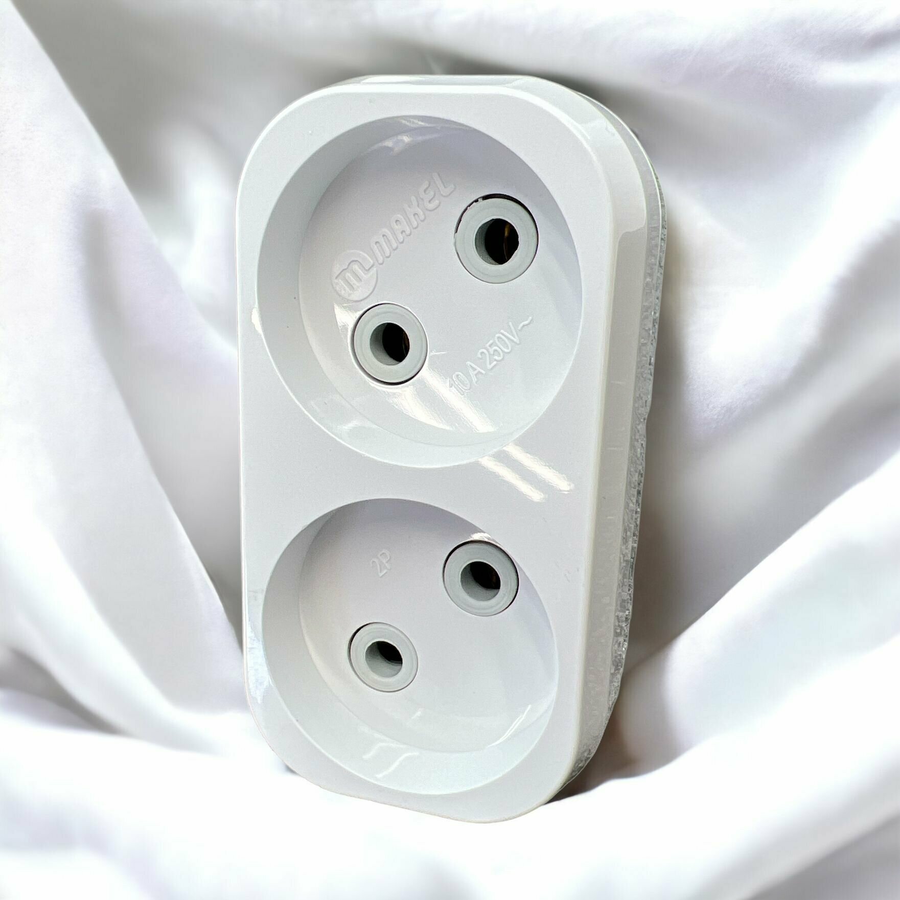 Сетевой разветвитель (тройник) Makel на 2 гнезда, без заземления, белого цвета. Максимальная мощность — 10А/2500 Вт, материал корпуса — поликарбонат.Сделано в Турции.