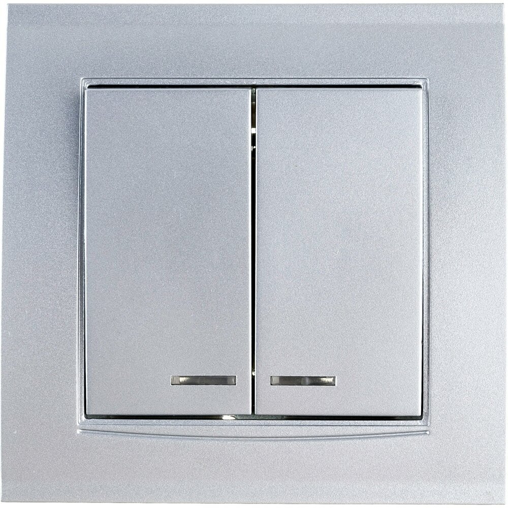 Выключатель 2-кл. СП Бриллиант 10А IP20 с подсветкой серебр. 7949667 Universal
