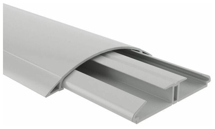 Кабель-канал ДКС предназначен для размещения на полу. Он имеет удобную полукруглую форму для оптимального распределения нагрузки. Внутри кабельного канала уже проложен разделитель, позволяющий прокладывать в нем провода разного назначения. Изделие изготовлено из пластика, не содержащего галогенов, а потому может использоваться в местах массового пребывания людей. Канал имеет длину 2 метра и высоту 17,5 мм. Цвет: серый.