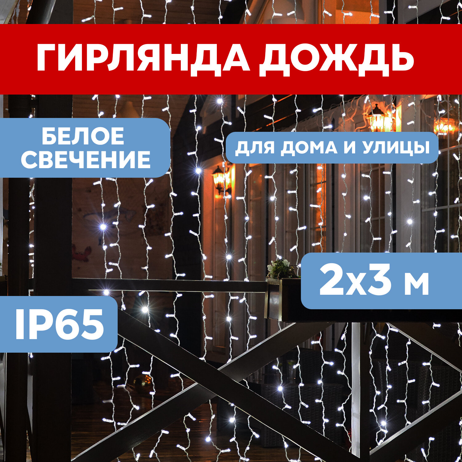 На сегодняшний день товар «Гирлянда Дождь "ПЛЕЙ-ЛАЙТ" 2х3м 448LED 27Вт 220В IP44 бел. прозр. провод 235-155-6 Neon-Night (размер: 200 x 300см)» можно купить с кешбеком в 3 магазинах: xcom-shop, М.Видео, Яндекс.Маркет