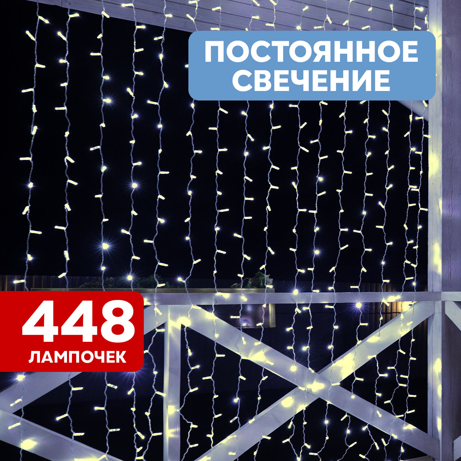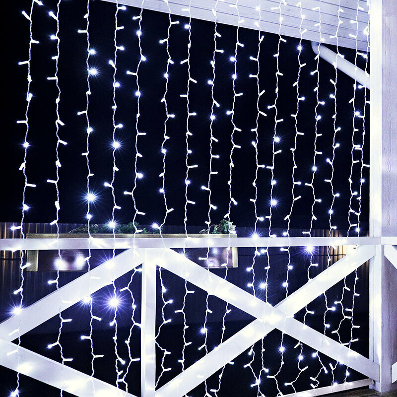 Гирлянда представляет горизонтальный шнур с прикрепленными к нему 16 вертикальными нитями со светодиодами. Подходит для украшения кафе, торговых центров и пр. Ударопрочная, влагостойкая, устойчива к перепадам температур, морозам и дождям. Монтируется в единую линию, создавая большой занавес.