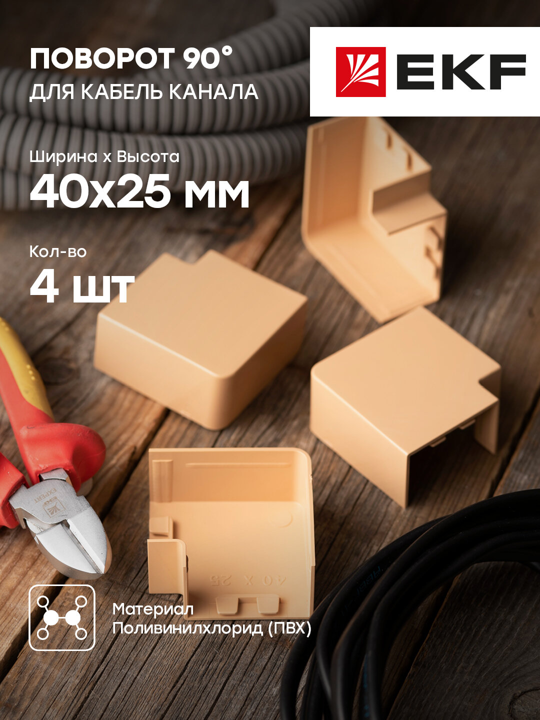 abl-40-25x4 Поворот 90 гр. (40х25) (4 шт) Plast PROxima под светлое дерево EKF PROxima светлое дерево 40х25 мм