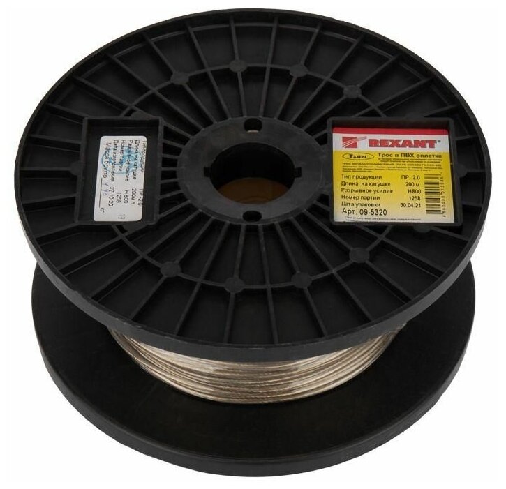 09-5320 Трос стальной в ПВХ изоляции d2.0мм (200м) Rexant