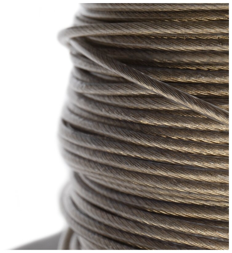 Трос с полимерным покрытием свивается из высокоуглеродистой стальной проволоки и покрывается ПВХ. ПВХ покрытие является экологически чистым и абсолютно безопасным для человека, животных и окружающей среды. Применяемые марки пластиката существенно повышают устойчивость троса к воздействию агрессивных сред и солнечного излучения. Атмосферные осадки и климатические изменения температуры от -40 до +50 °С фактически не влияют на эластичность, истираемость и прозрачность покрытия. Трос отличается высоким качеством, надежностью, долговечностью и стойкостью к большим нагрузкам. Является аналогом таких тросов, как стальной нержавеющий трос и оцинкованный трос с полимерным покрытием.