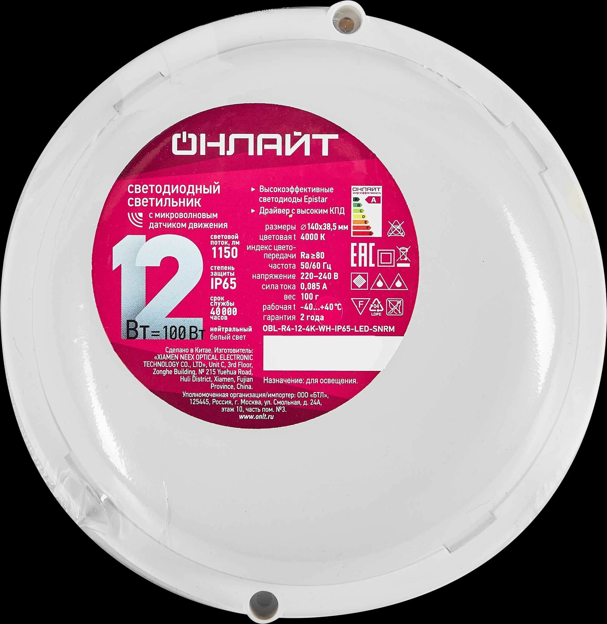 71623 Светильник 71 623 OBL-R1-12-4K-WH-IP65-LED-SNRV Онлайт