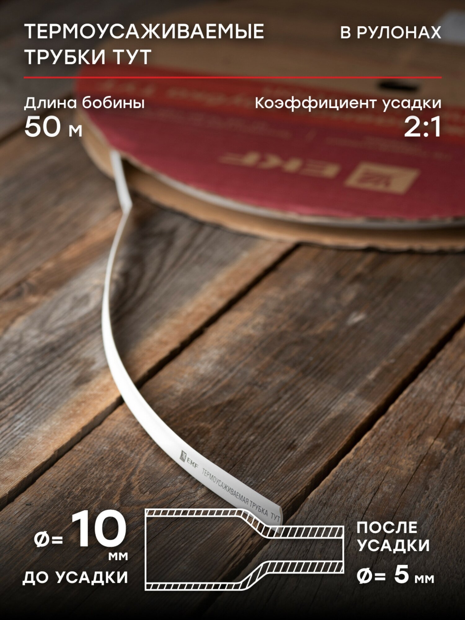 tut-10-w Термоусаживаемая трубка ТУТ 10/5 белая рулон PROxima Упаковка (100 шт.) EKF