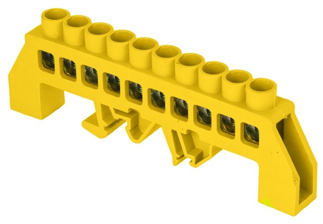 Шина нулевая PE 8х12 10 отвер. латунь желт. нейлоновый корпус комбинированный PROxima EKF sn0-125-10-dpeШины предназначены для присоединения нулевых проводников (шина N) и заземления (шина PE). Шины выполнены из латуни. Нулевая шина устанавливается на изоляторе.