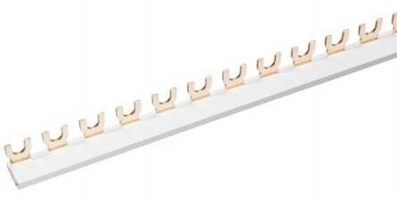 Применяются для удобного и безопасного соединения групп: ВА (выключатели автоматические), АД (автоматы дифференциальные), ВД (выключатели дифференциальные), ВН (выключатели нагрузки). Шины с шагом 18 мм предназначены для коммутации аппаратуры шириной, кратной одному модулю, шины с шагом 27 мм предназначены для коммутации изделий шириной, кратной полутора модулям. Шины, рассчитанные на номинальный ток 100 А, могут быть использованы с номинальным током 125 А, если вводной автомат подключать по центру. Для полуторамодульных шин имеются боковые заглушки.