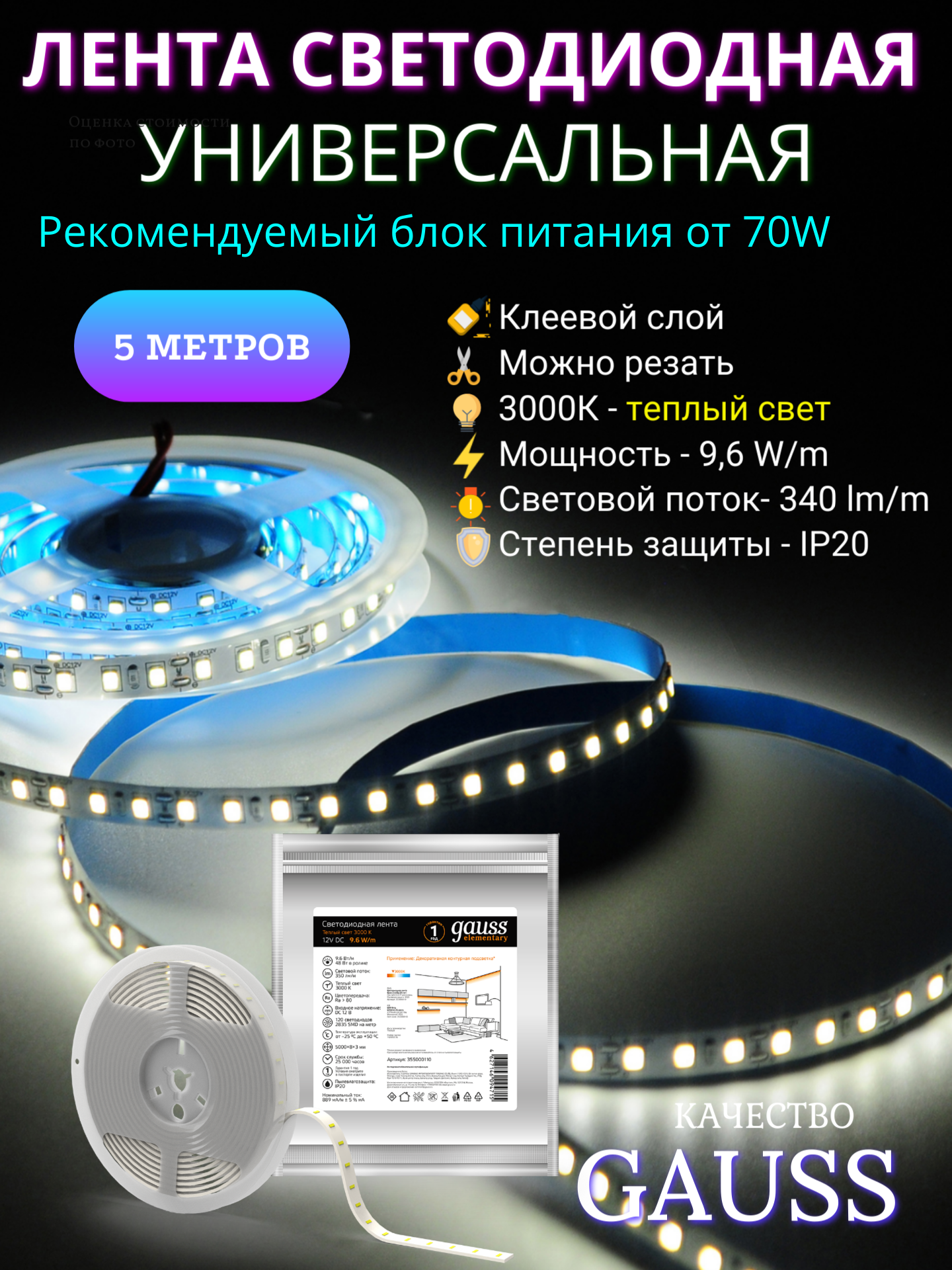 На сегодняшний день товар «355000110 Лента LED Elementary 2835/120-SMD 9.6W 12V DC теплый белый IP20 (ZIP Bag 5м) Gauss» можно купить с кешбеком в 1 магазине: Яндекс.Маркет