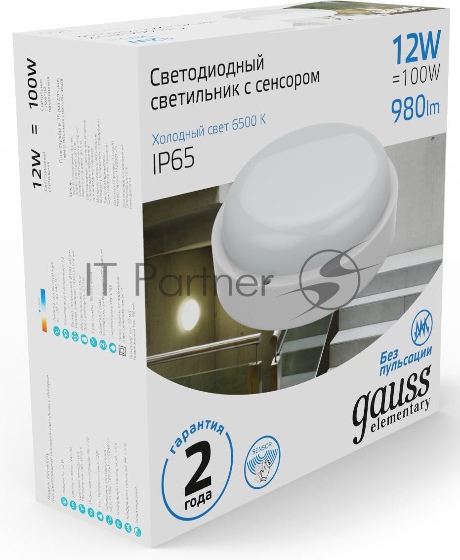 Gauss Светильник светодиодный круглый с микроволновым сенсором ЖКХ IP65 12W 980lm 6500K Данная модель имеет аккуратную форму, что дает возможность воплотить в реальность даже самую невероятную дизайнерскую задумку. Ведь, как всем хорошо известно, именно освещение является неотъемлемой составляющей любого интерьера. Характеристики: Размеры: 160x53 мм Мощность: 12 Вт Цветовая температура: 6500К (холодный) Световой поток: 980 Лм Класс защиты: IP65 Рабочее напряжение: 185-265 В