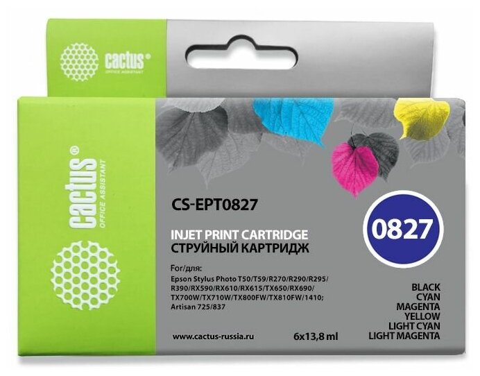 | Совместимость | Epson Stylus Photo R270, Epson Stylus Photo R290, Epson Stylus Photo R295, Epson Stylus Photo R390, Epson Stylus Photo RX590, Epson Stylus Photo RX610, Epson Stylus Photo RX690, Epson Stylus Photo TX650, Epson Stylus Photo TX659, Epson Stylus T50, Epson Stylus T59 |