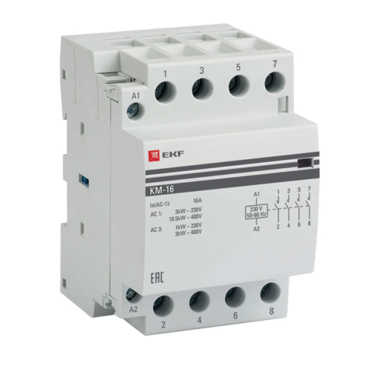 ОПИСАНИЕ. Модульные контакторы представляют из себя контактор в классическом корпусе модульного оборудования. Он состоит из неподвижных контактов, подвижных контактов, которые закреплены в подвижной части магнитной системы. Неподвижная часть магнитной системы закреплена жестко в корпусе КМ. Пружина препятствует смыканию контактов. При подаче напряжения на катушку управления в магнитной системе контактора возникает магнитное поле, которое, преодолевая сопротивление пружины, смыкает магнитную систему и замыкает контакты. При отключении напряжения с катушки управления пружина размыкает контакты. Возможна коммутация алюминиевым и медным проводом. ПРЕИМУЩЕСТВА. Резиновый демпфер уменьшает шум при работе. Мостиковый контакт обеспечивает быстрое гашение дуги при коммутации. Серебросодержащий композит на контактах. Двухпозиционный зажим на DIN-рейку. Индикатор состояния контактов. Маркировочная площадка с защитной крышкой. ПРИМЕНЕНИЕ. Системы управления и автоматизации жилых, офисных, промышленных и больничных помещений, управление: освещением; обогревом, в том числе теплые полы, стены, обогреватели; вентиляцией; насосами.