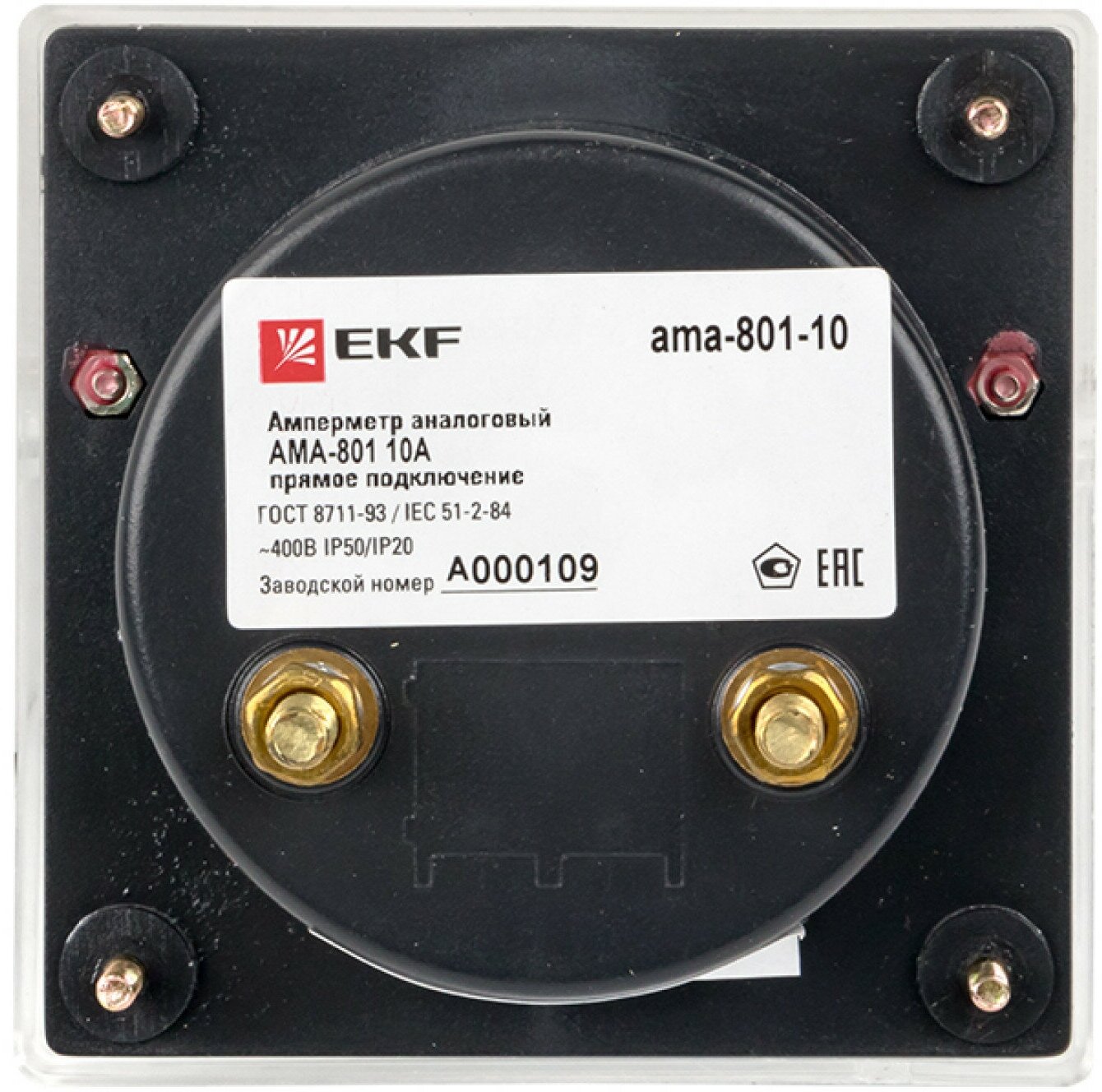 Амперметр AMA-801 аналоговый на панель (80х80) круглый вырез 10А прямое подключение EKF (ama-801-10)