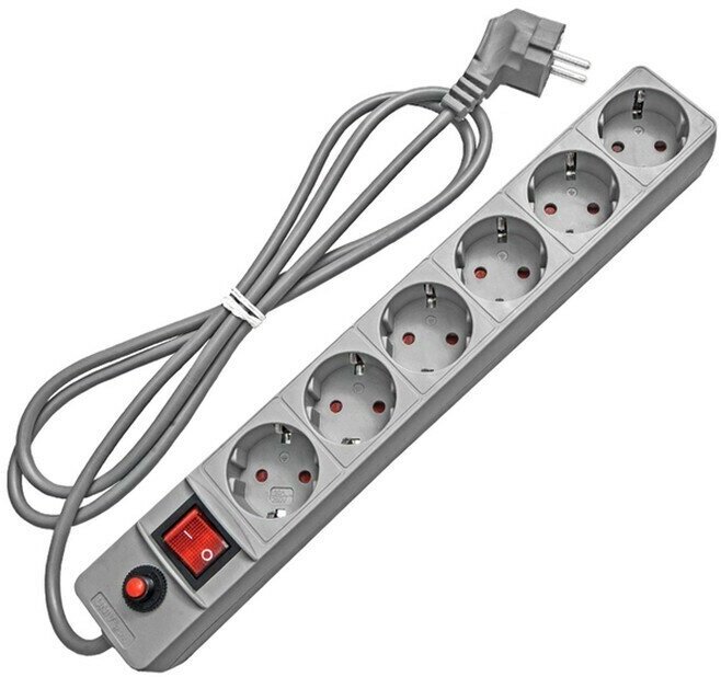 Сетевой фильтр позволяет подключать к электросети одновременно до 6 различных устройств (компьютеры, оргтехнику, электроприборы), необходим, чтобы уберечь приборы от поломки в случае скачков напряжения или короткого замыкания.