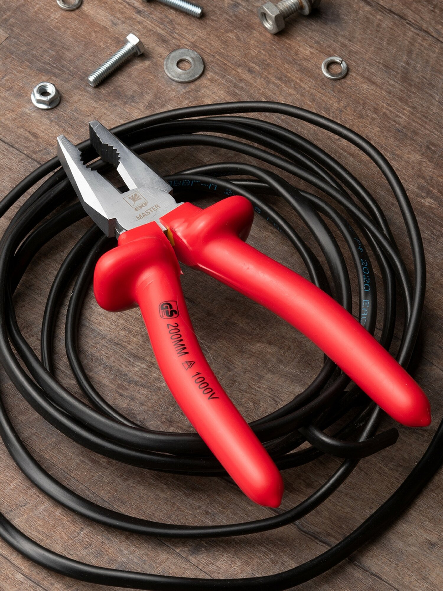 ОПИСАНИЕ. Диэлектрический шарнирно-губцевый инструмент – большая группа изделий, необходимых для проведения работ под напряжением до 1000 В. Инструмент серии Master имеет диэлектрическое покрытие (изоляцию), нанесенное методом погружения. Инструмент серии Expert имеет насадную диэлектрическую изоляцию с элементами защиты от соскальзывания. ПРЕИМУЩЕСТВА. Материал рабочей части: инструментальная хром-ванадиевая сталь. Поверхность: матовое никелирование. Режущие кромки дополнительно закалены токами высокой частоты HRC 62. Высококачественный материал и отличная эргономика рукояток. Упоры для защиты от соскальзывания, обеспечивают удобный хват и рычажное усилие, необходимое для осуществления реза. Expert – серия инструментов с улучшенными эксплуатационными характеристиками, которые проходят дополнительную обработку и контроль при производстве. Соответствие нормам IEC 60900:2004. ПРИМЕНЕНИЕ. • Пассатижи используют для захвата и удержания плоских и цилиндрических деталей, проводов и элементов крепежа. Наличие режущей кромки позволяет откусывать проволоку и зачищать провода. • Бокорезы предназначены для разрезания проволоки, проводов,гвоздей, прутьев. Различаются по форме и размеру рабочей части. • Кабельные ножницы применяют для резки медных или алюминиевых проводов/кабелей. • Длинногубцы/Длинногубцы изогнутые используются для захвата и удержания мелких элементов, проволоки, колец, винтиков и выполнения различных работ в труднодоступных местах. • Круглогубцы применяют для закручивания или выпрямления проволоки и тонких металлических изделий. • Клещи переставные предназначены захвата и опрессовки деталей, сгиба труб, демонтажа винтовых соединений и т. д.