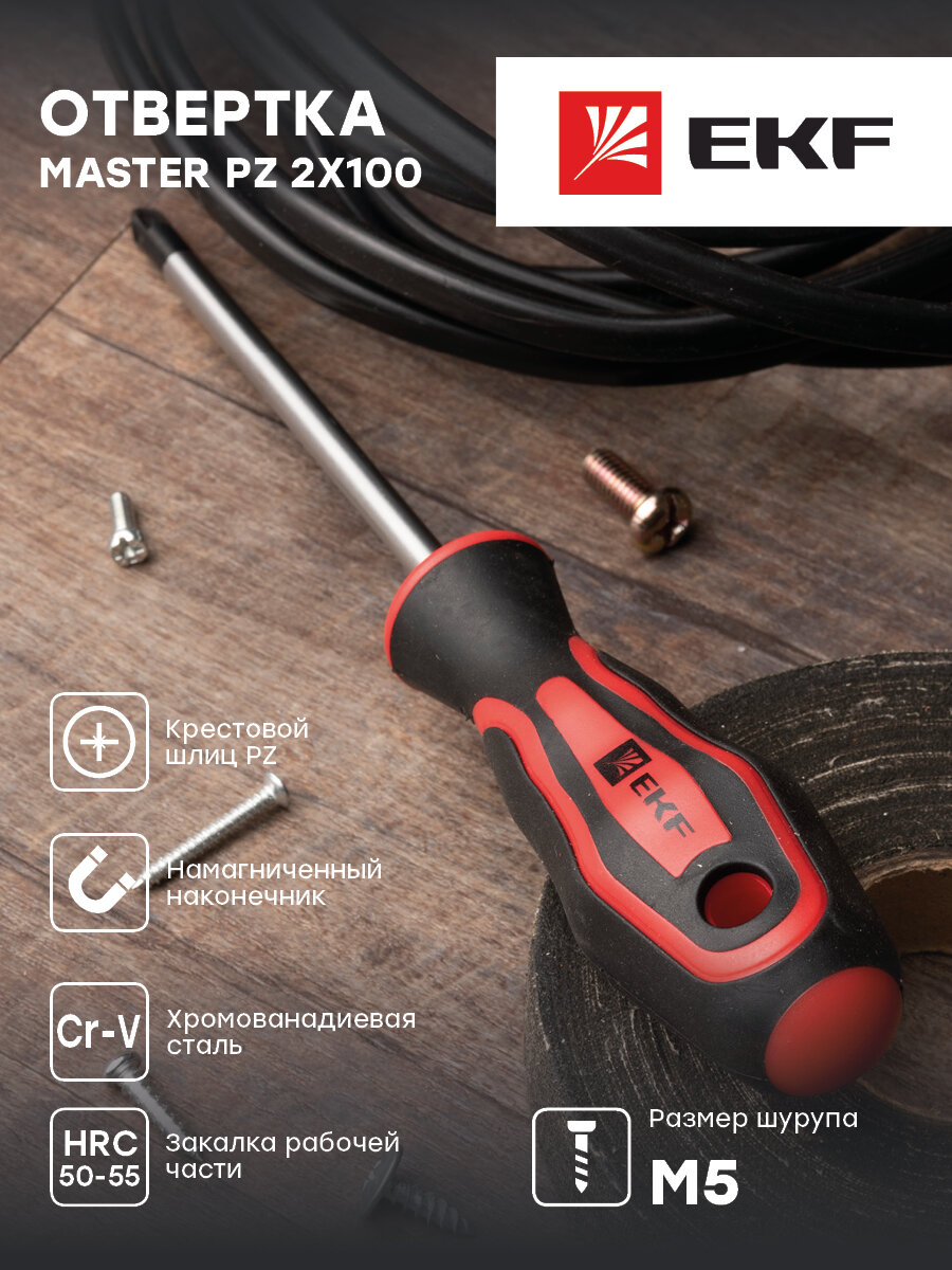 pz-2-100-mas Отвертка Master PZ2x100 мм Basic Упаковка (12 шт.) EKF