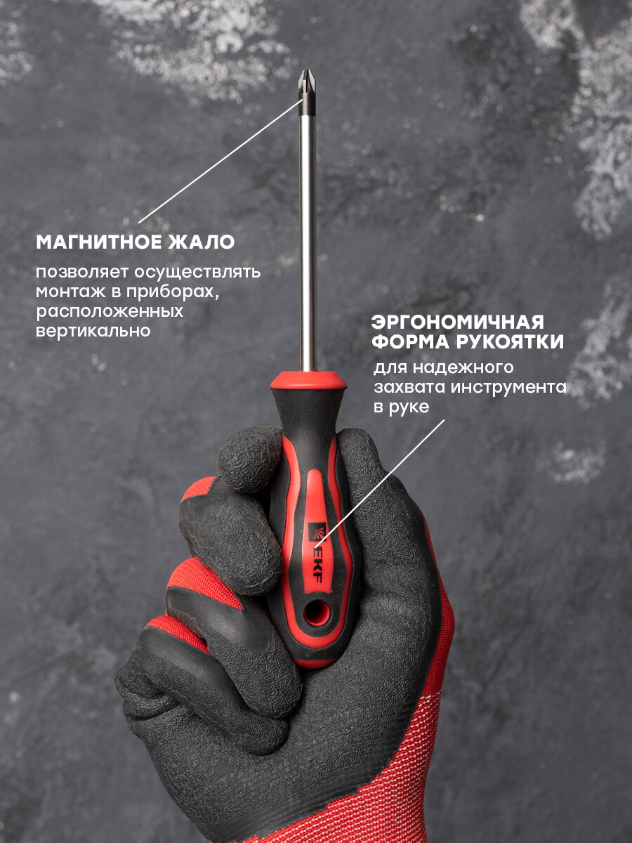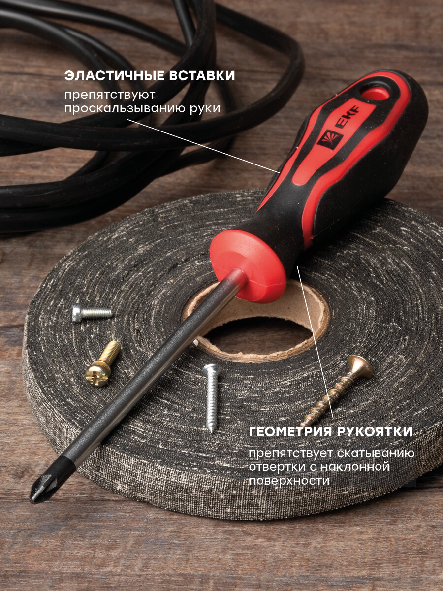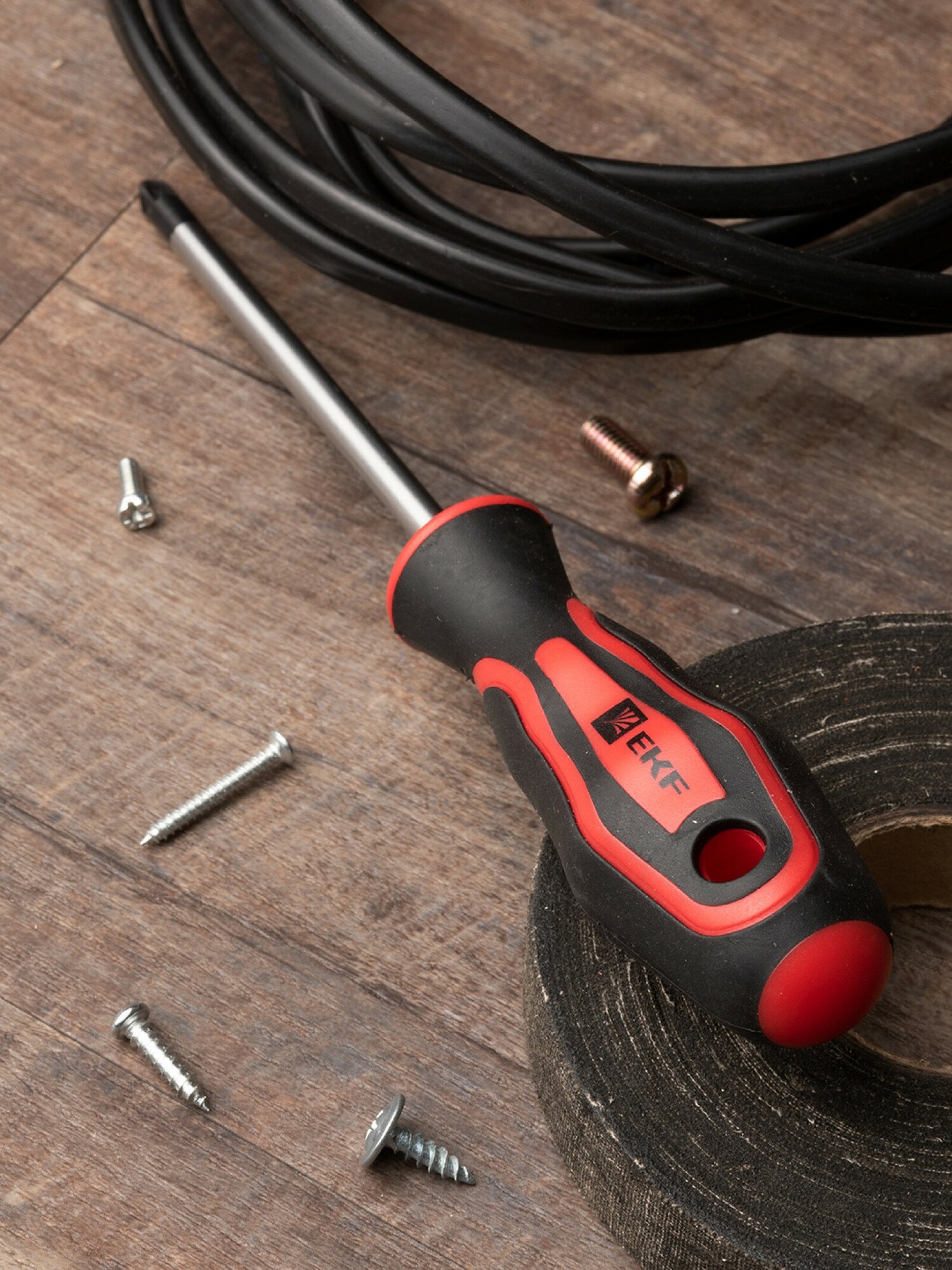 ОПИСАНИЕ. Отвертки - это ручной инструмент с широким спектром применения у профессионалов и любителей, предназначенный для завинчивания и отвинчивания крепежных изделий с резьбой. ПРЕИМУЩЕСТВА. • Рабочая часть отверток выполнена из Cr-V – хромованадиевой стали, что делает ее устойчивой к механическим повреждениям, температурным воздействиям и образованию коррозии. • Намагниченный наконечник с дополнительной закалкой HRC 50-55. • Высококачественный материал двухкомпонентной рукоятки обеспечивает плотный контакт и минимизирует эффект скольжения. • Диаметр и специальная форма рукояток обеспечивают увеличенный крутящий момент при минимальных физических затратах. ПРИМЕНЕНИЕ. Электромонтажные работы: • Ремонт бытовой техники и компьютеров. • Сборка и разборка мебели. • Обслуживание транспорта и т. д.