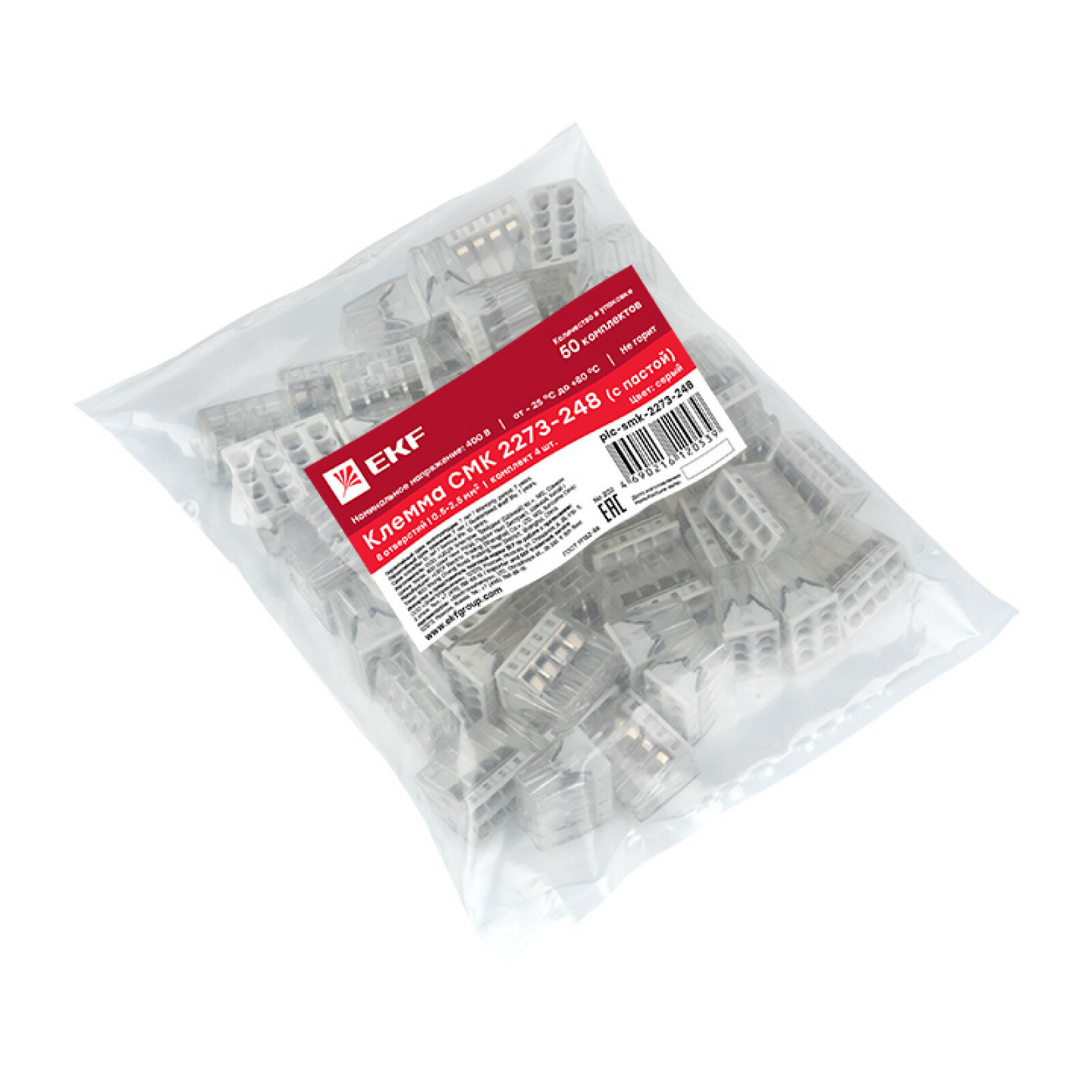 plc-smk-2273-248 Строительно-монтажная клемма СМК 2273-248 (с пастой) 8 отверстий 05-2.5мм2 (50шт.) PROxima EKF СМК 2273-248 PROxima