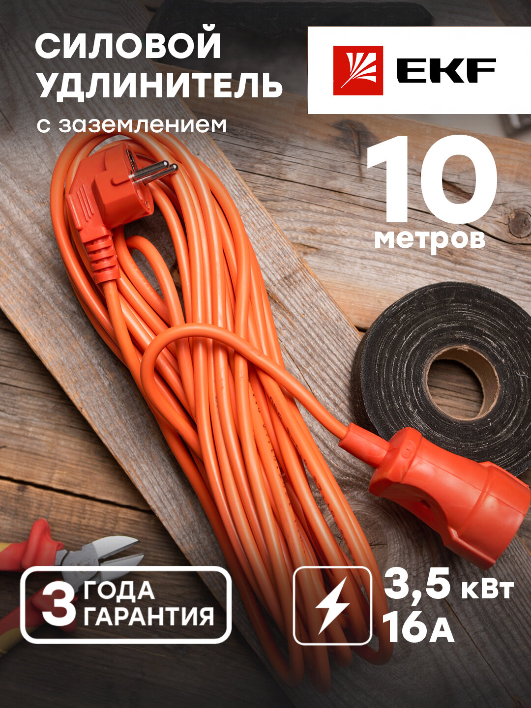 USB02-16-310-1-10 Удлинитель "Зевс 2.0" 10м c заземлением ПВС 3*1 16А/35кВт PROxima Упаковка (15 шт.) EKF
