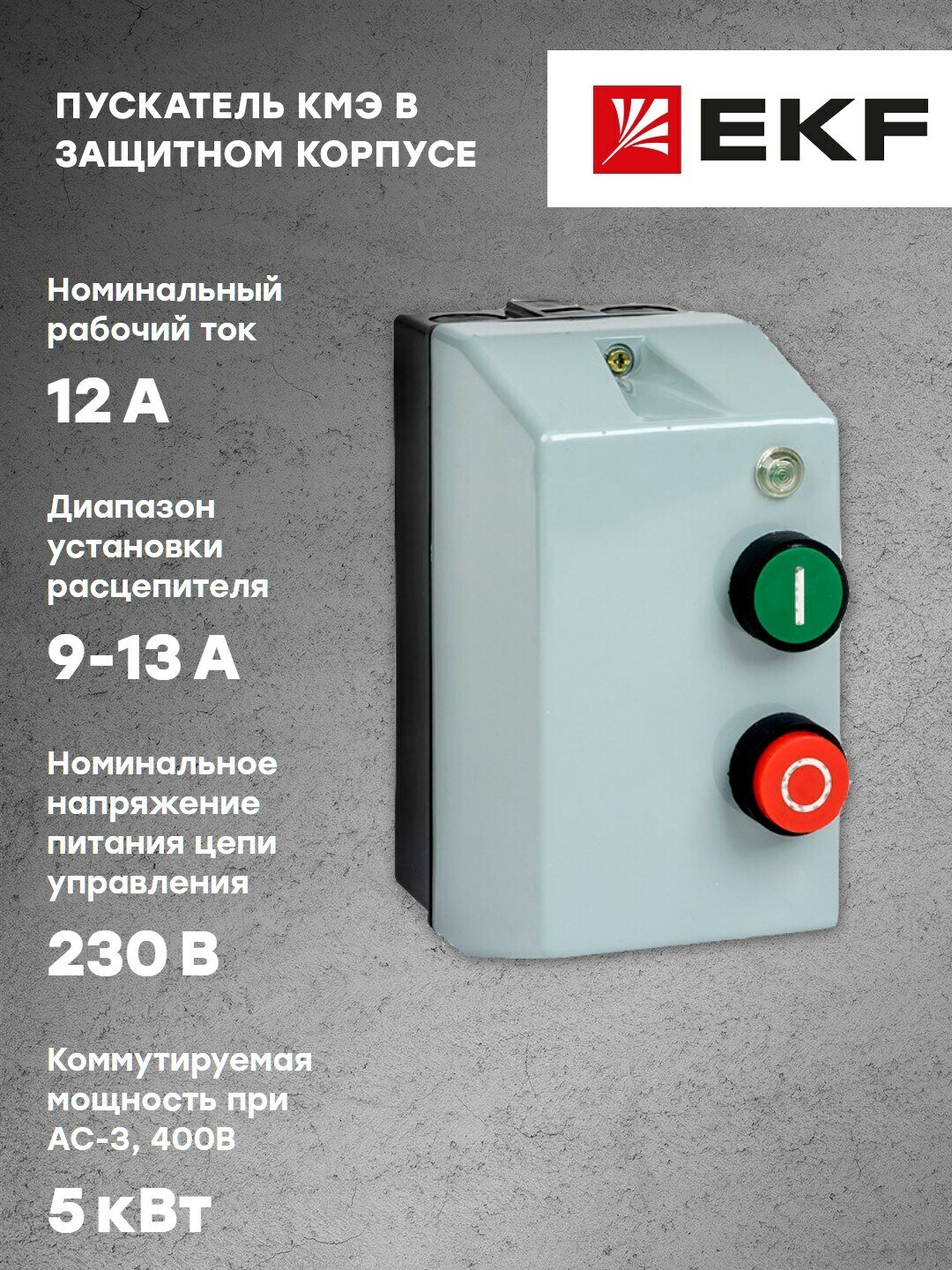 ctrp-r-12-230v-led Пускатель в корпусе IP65 КМЭ 12А 230В с РТЭ и индикатором PROxima Упаковка (10 шт.) EKF