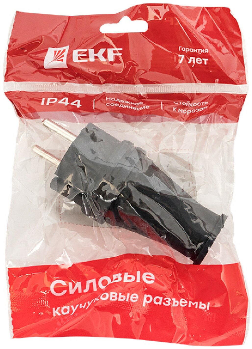 Вилка оранжевая каучуковая прямая 230В 2P+PE 16A IP44 PRO EKF (RPS-011-16-230-44-ro)