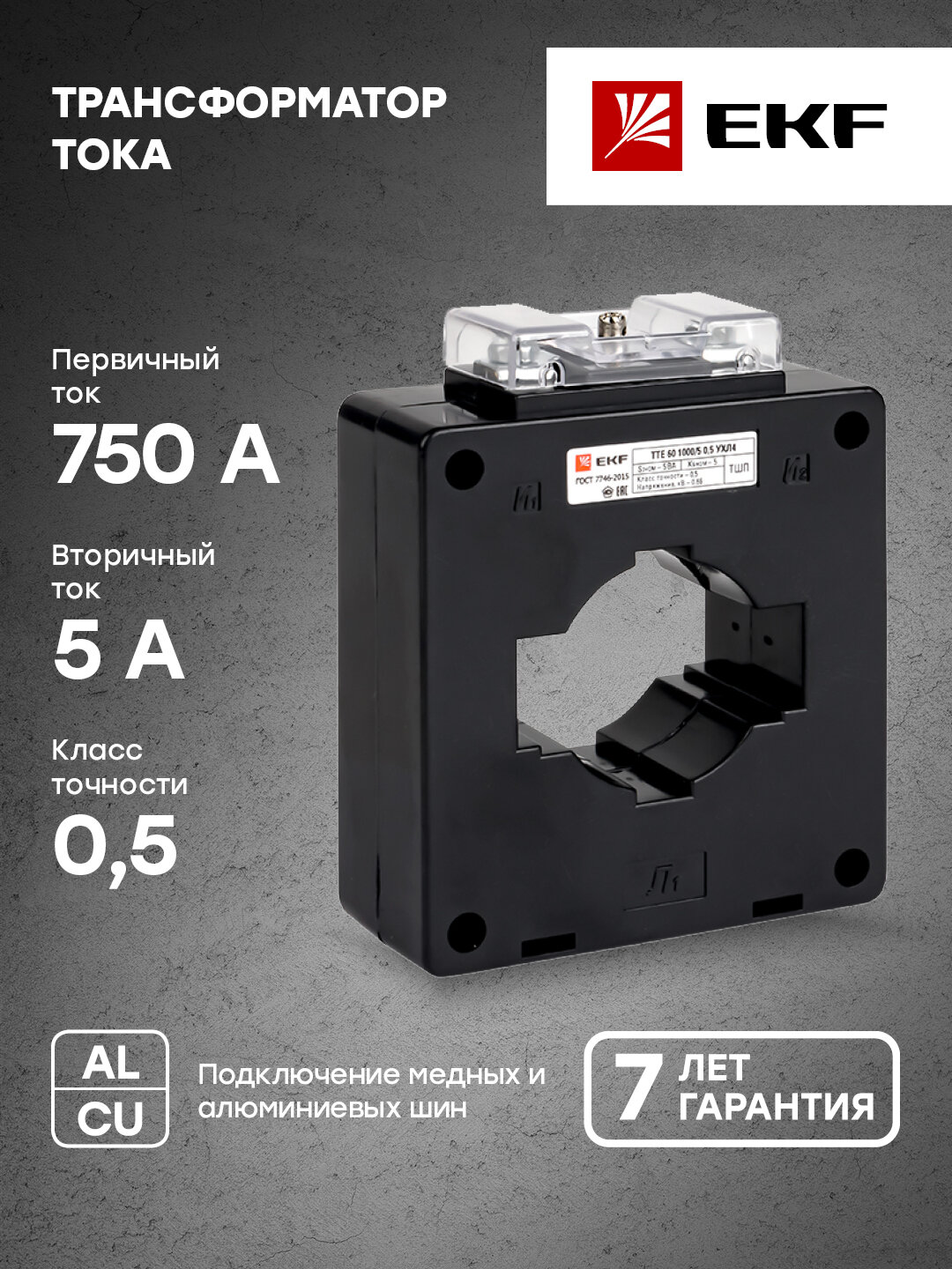 Трансформатор тока EKF ТТЕ-60-750/5А класс точности 05 PROxima (tte-60-750)