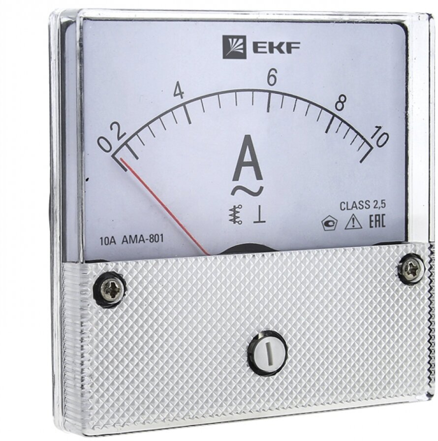Амперметр AMA-801 аналоговый на панель (80х80) круглый вырез 400А трансф. подкл. EKF (ama-801-400)